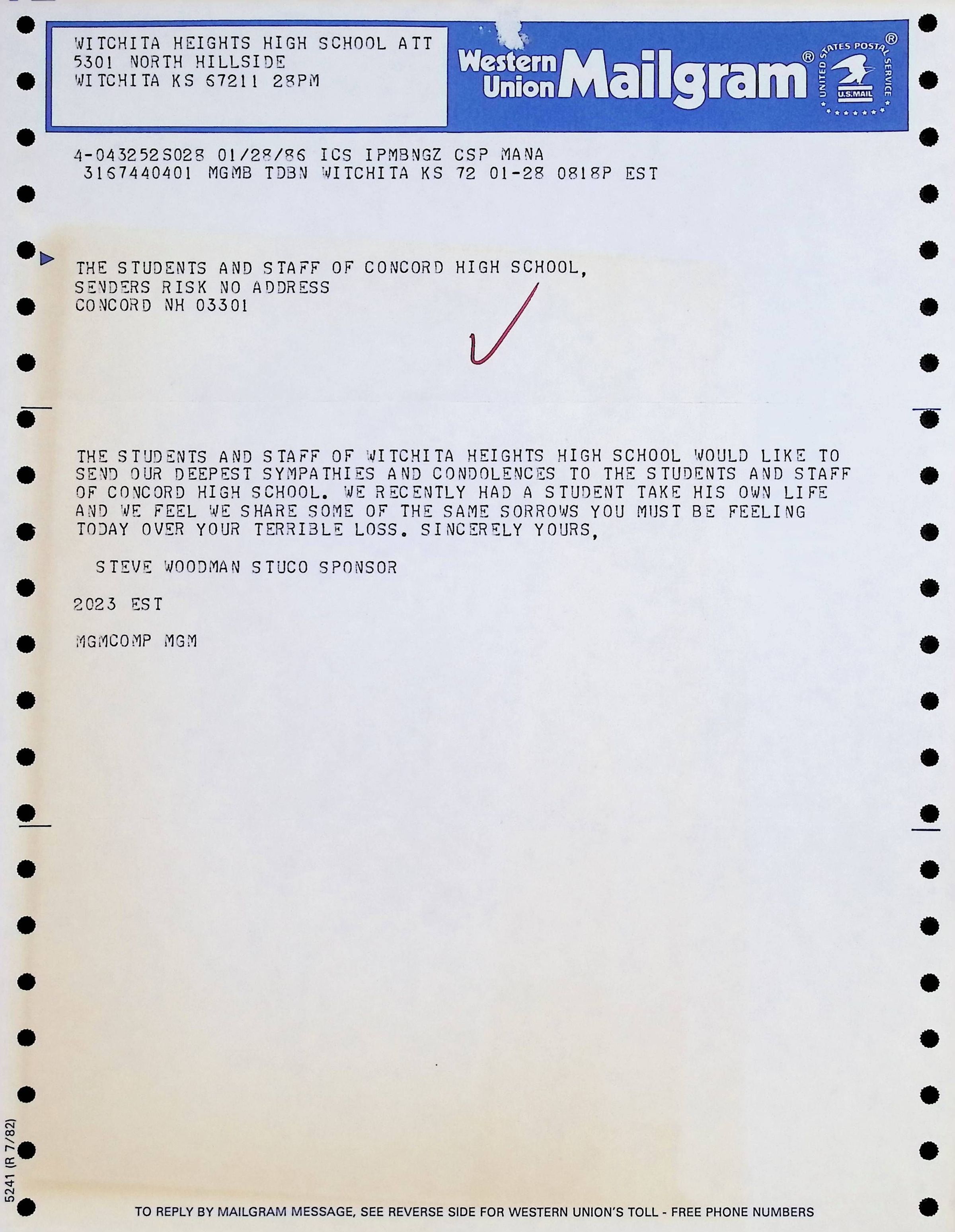Mailgram spelled Wichita incorrectly ("Witchita")