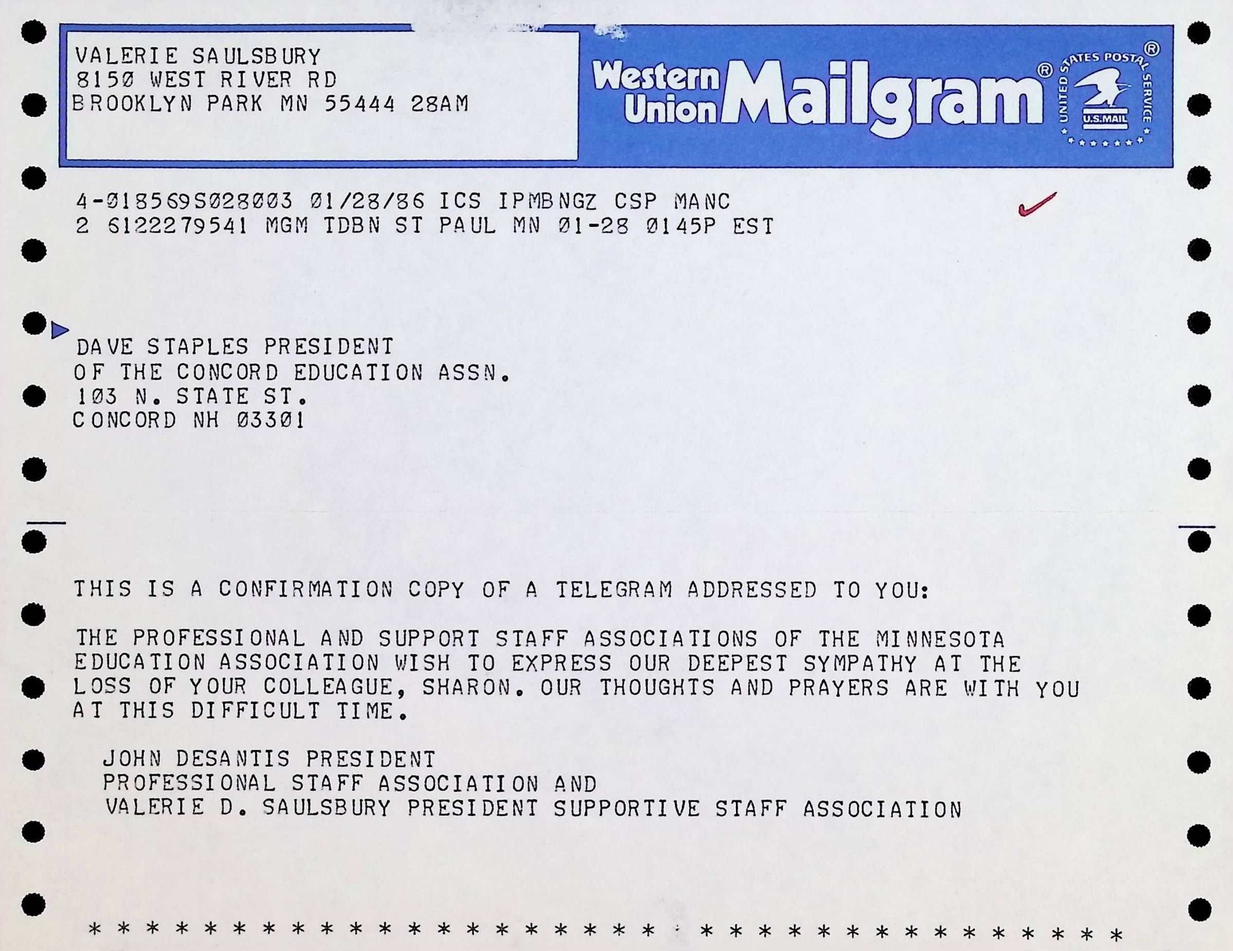 Western Union Mailgram