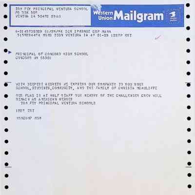 Western Union Mailgram To Concord High School from Ventura Schools Dated 1/29/1986