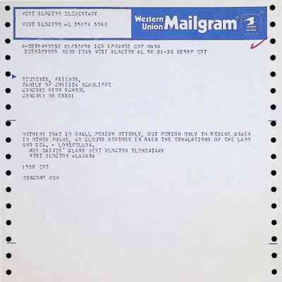 Western Union Mailgram To Concord High School from West Blocton Elementary Dated 1/30/1986