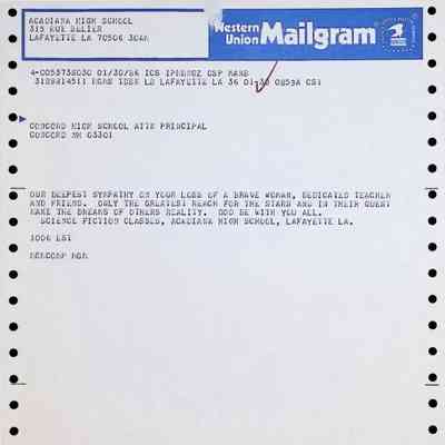 Western Union Mailgram To Concord High School from Acadiana High School Dated 1/30/1986