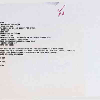 Photocopy of Telegram dated January 30, 1986Entry/Object ID