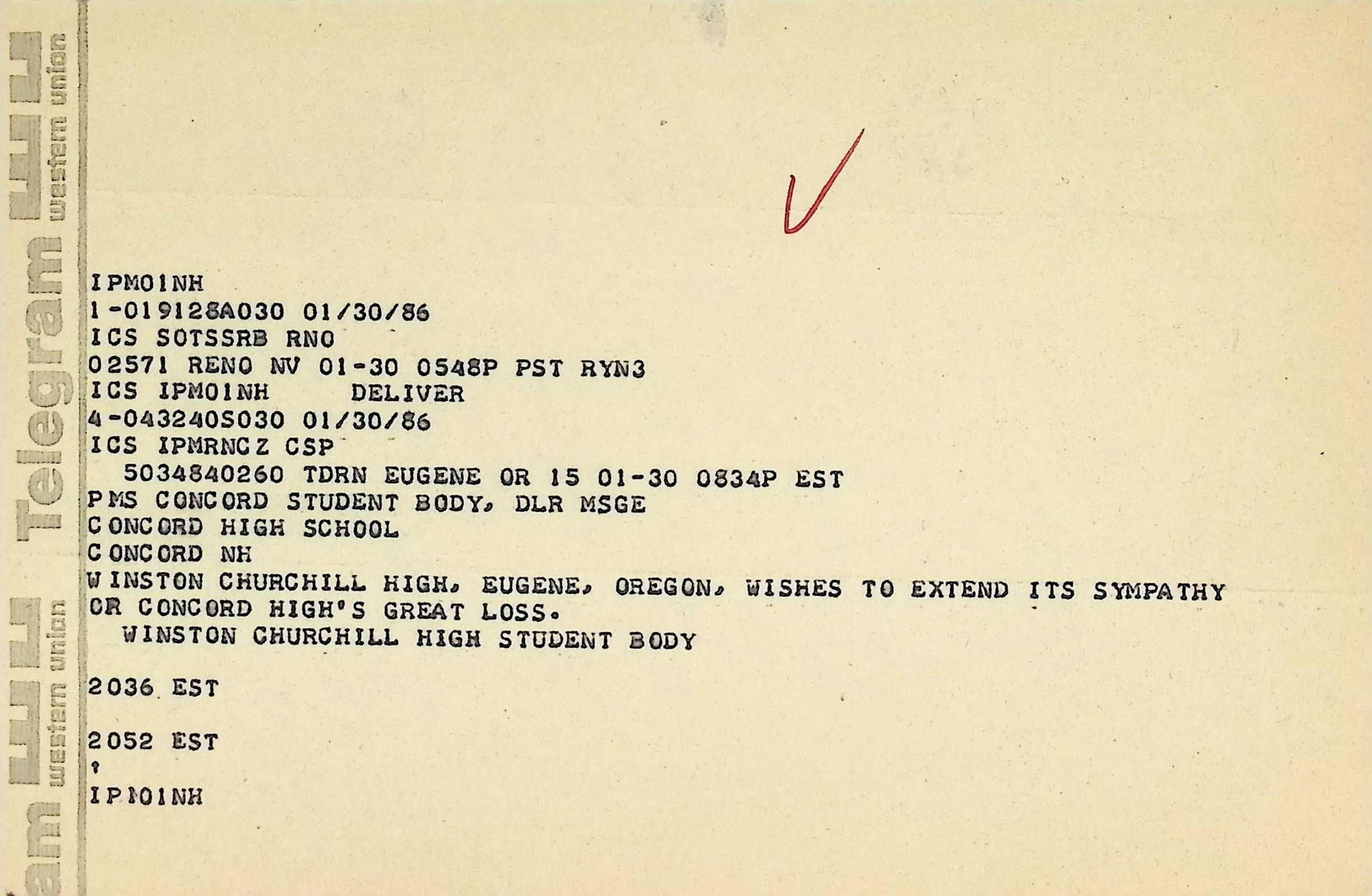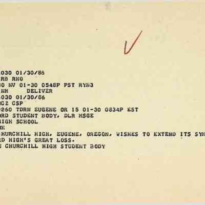 Telegram dated January 30, 1986Entry/Object ID