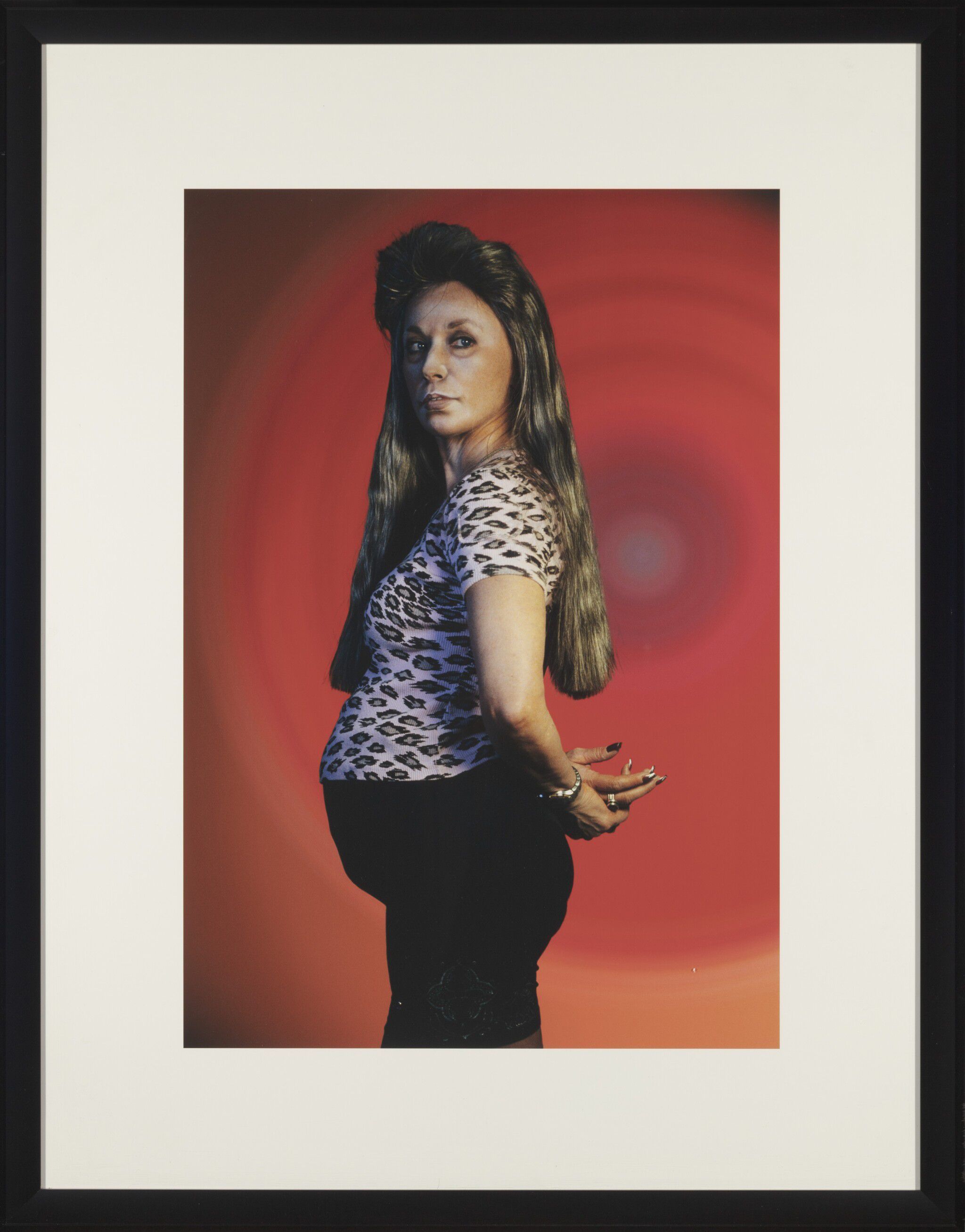 Throughout 2024, we're looking back at the 100 year history of art at the Mulvane. This recently acquired work is by Cindy Sherman, an acclaimed photographer known for portraying characters as a way of exploring tropes about women. In this photograph, she takes on the persona of a pregnant woman. Her pose unabashedly displays her round belly, while her distant gaze suggests some preoccupation about her status.