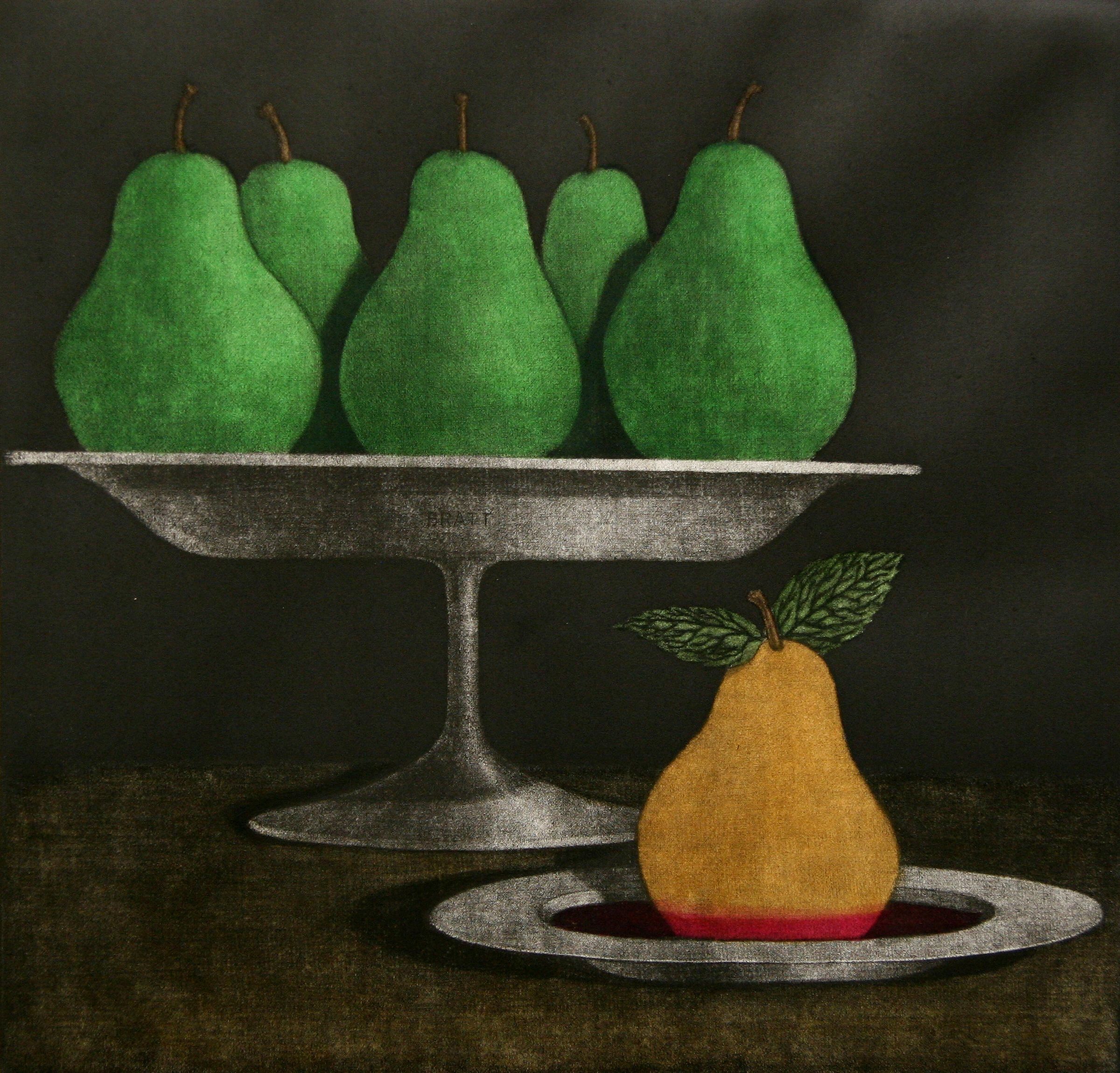 Raison d'Etre = "Reason for Being". The poached pear with raspberry sauce is the "raison d'etre" for the pears above.