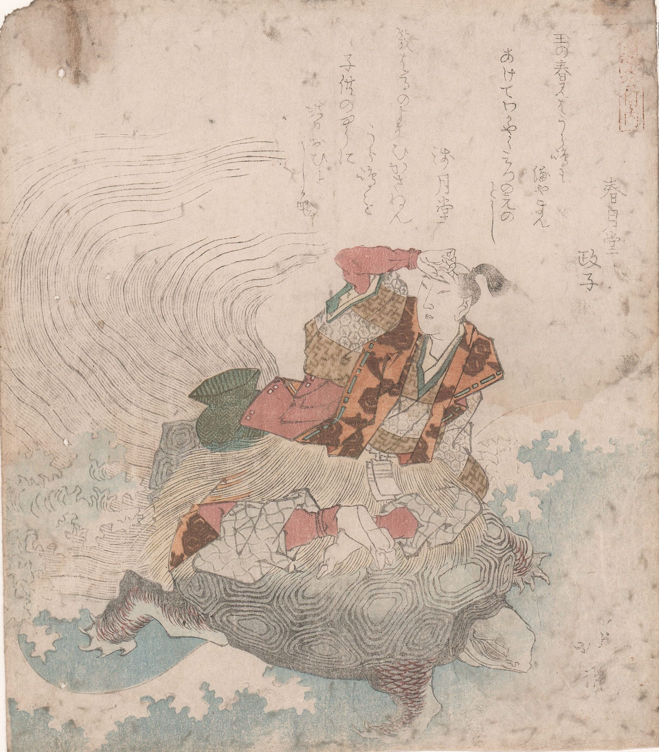 In a Japanese fairy tale, a kind-hearted boy Urashima Taro lives in a small fishing village. One day, he rescues a small tortoise that was being tormented by a group of mischievous children. the next morning, the tortoise comes to show its appreciation. He magically grows in size, puts Taro on his back and takes him under the sea to "Ryugu-jyo," the Sea King's Palace, a magnificent land of eternal youth.