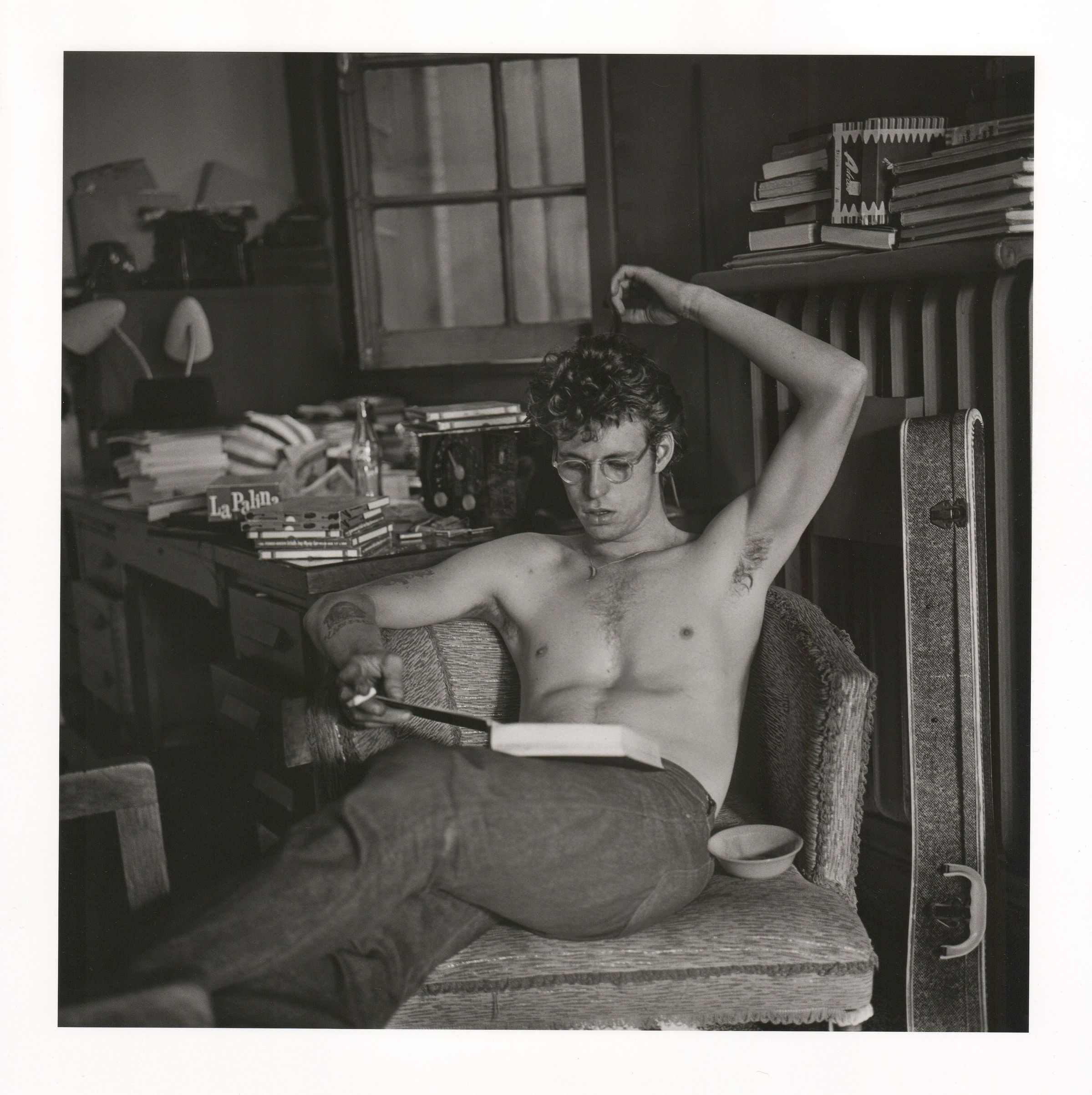 Larry Fink captured this moment of a man existing in his own bubble, yet the context behind it is unsure. This could have been a posed scene, or simply a candid moment of Fink experimenting with the camera. This work perfectly represents the strange idleness of being alone and relaxing. The cigarette between the subject’s fingers, the book he has almost completed, his exposed abdomen, and the absentminded hair-twirling showcase exactly the carefree relaxation of being in one’s own space where they feel comfortable. This image invokes a rainy Sunday afternoon, with nothing to do but finish one’s book and exist in a completely natural state.