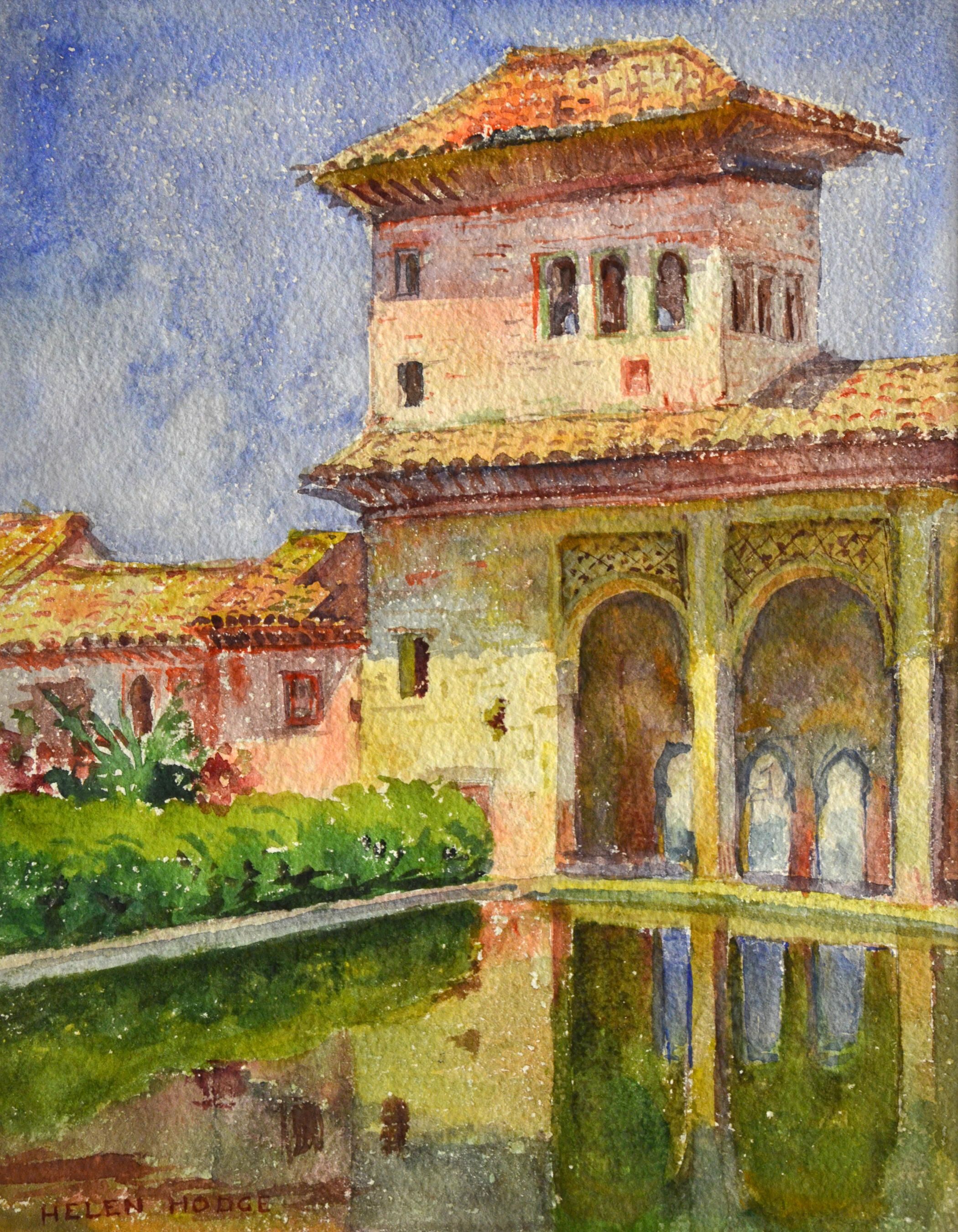 In 1928 Topeka artist Helen Hodge spent three months in southern Europe, including Spain. This watercolor depicts the Portico del Partal, a section of the fourteenth-century Nasrid Palace, part of the Alhambra in Granada, Spain. Conquered in 1492 by Christian monarchs Ferdinand and Isabella, the Nasrids were the last Muslim rulers in Spain. The Alhambra would have seemed exotic to American and European travellers because it was built in an Islamic style.