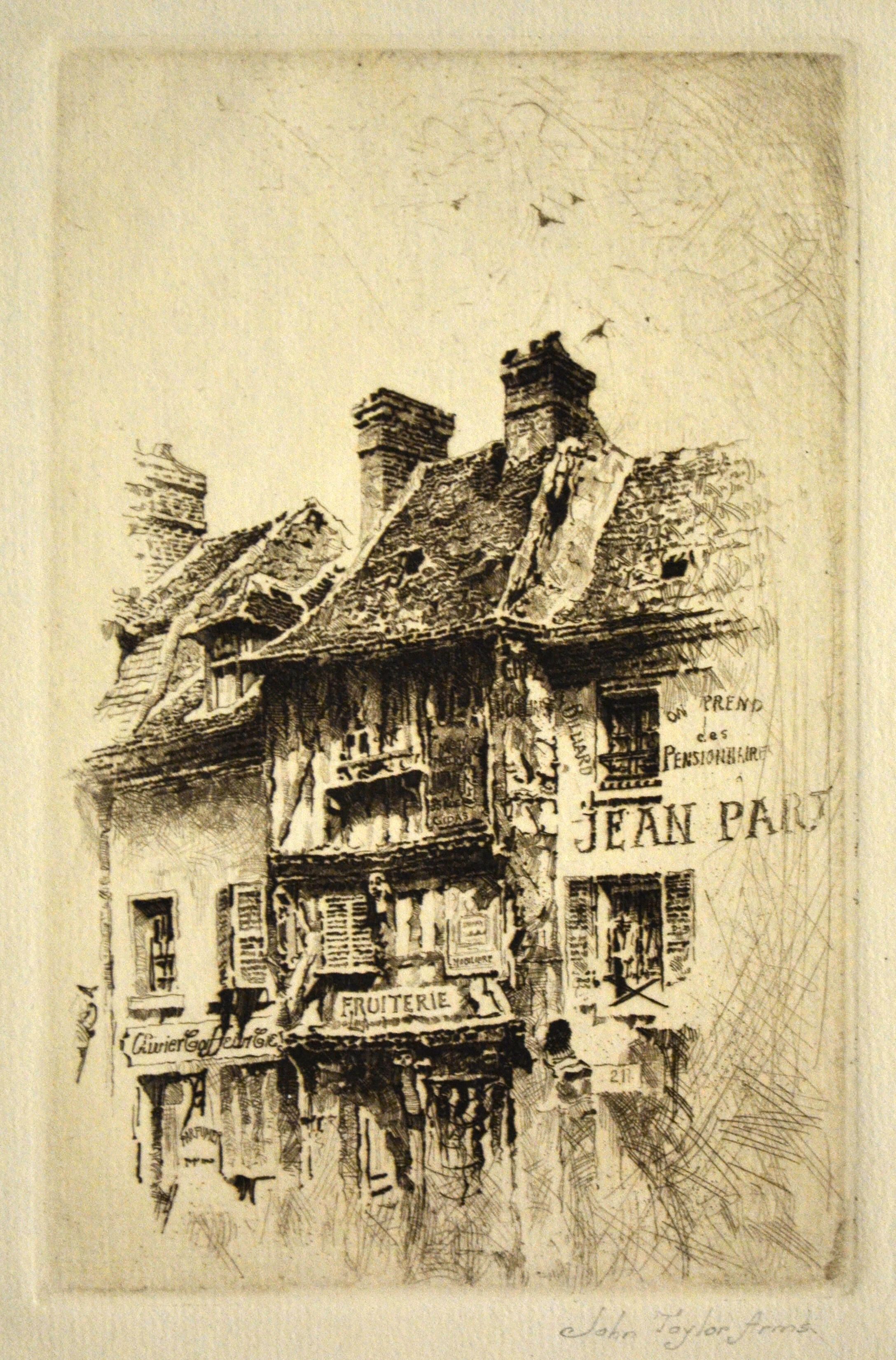 Veterans (Silent Witnesses) was based on a drawing of fifteenth and sixteenth-century houses in Liseaux, France. Arms trained as an architectural draftsman, and many of his works portray old, picturesque buildings. Done during World War I, the title may refer to the buildings as silent witnesses to the horrors around them.