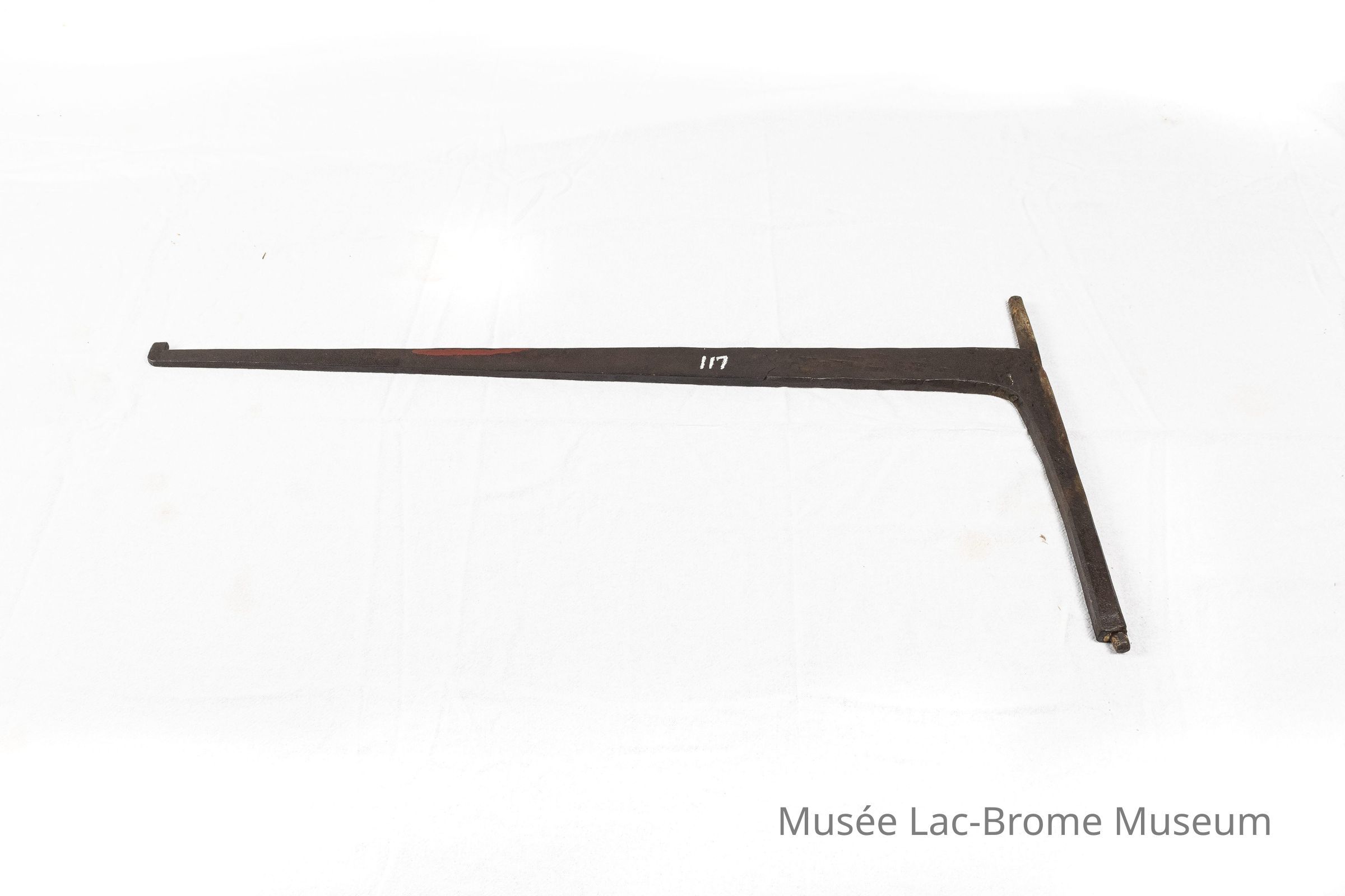 A metal framework consisting of a swinging horizontal arm, slightly curved at one end. / Une structure métallique composée d'un bras horizontal pivotant, légèrement incurvé à une extrémité.Use