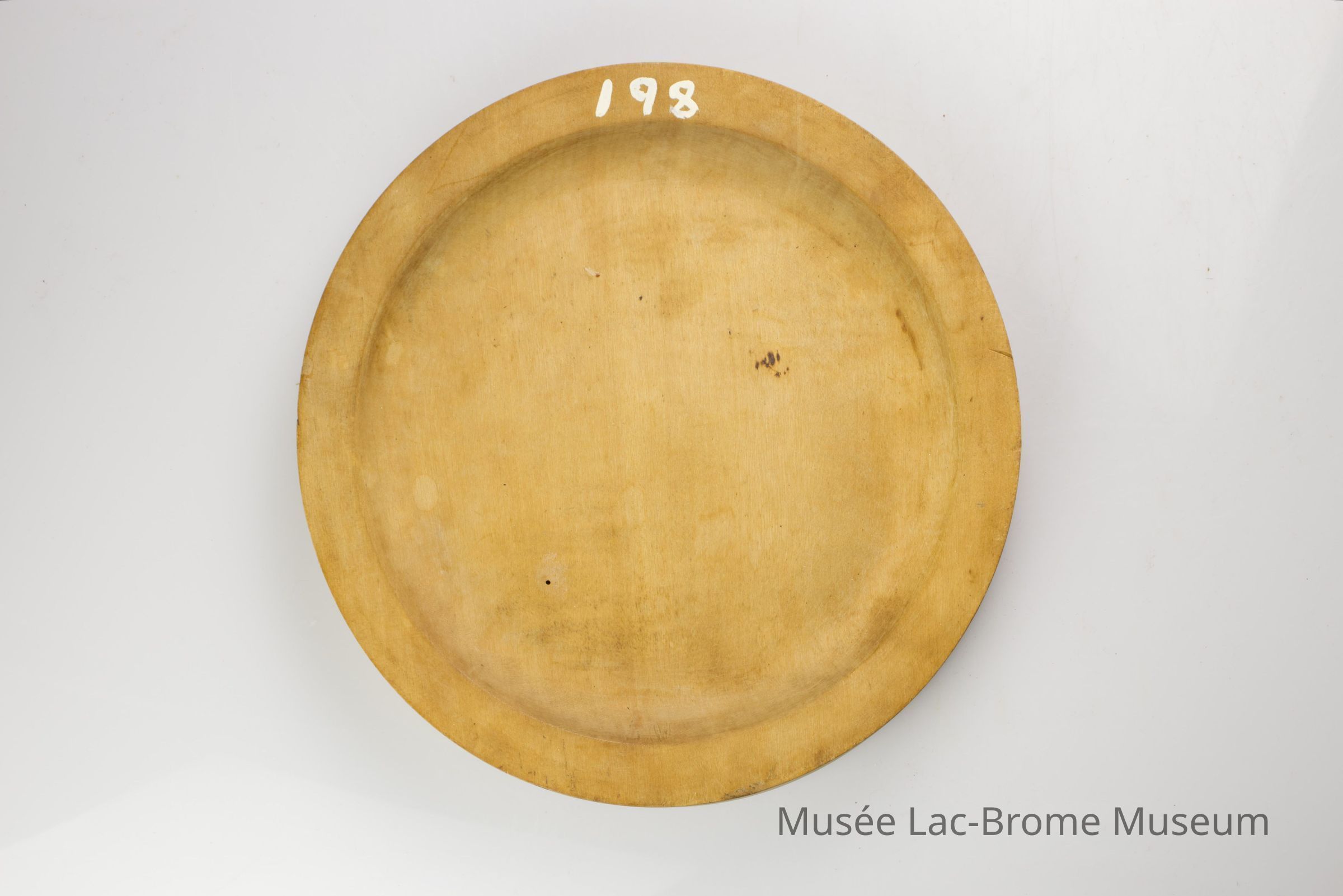 A small wooden plate. / Une petite assiette en bois.Context