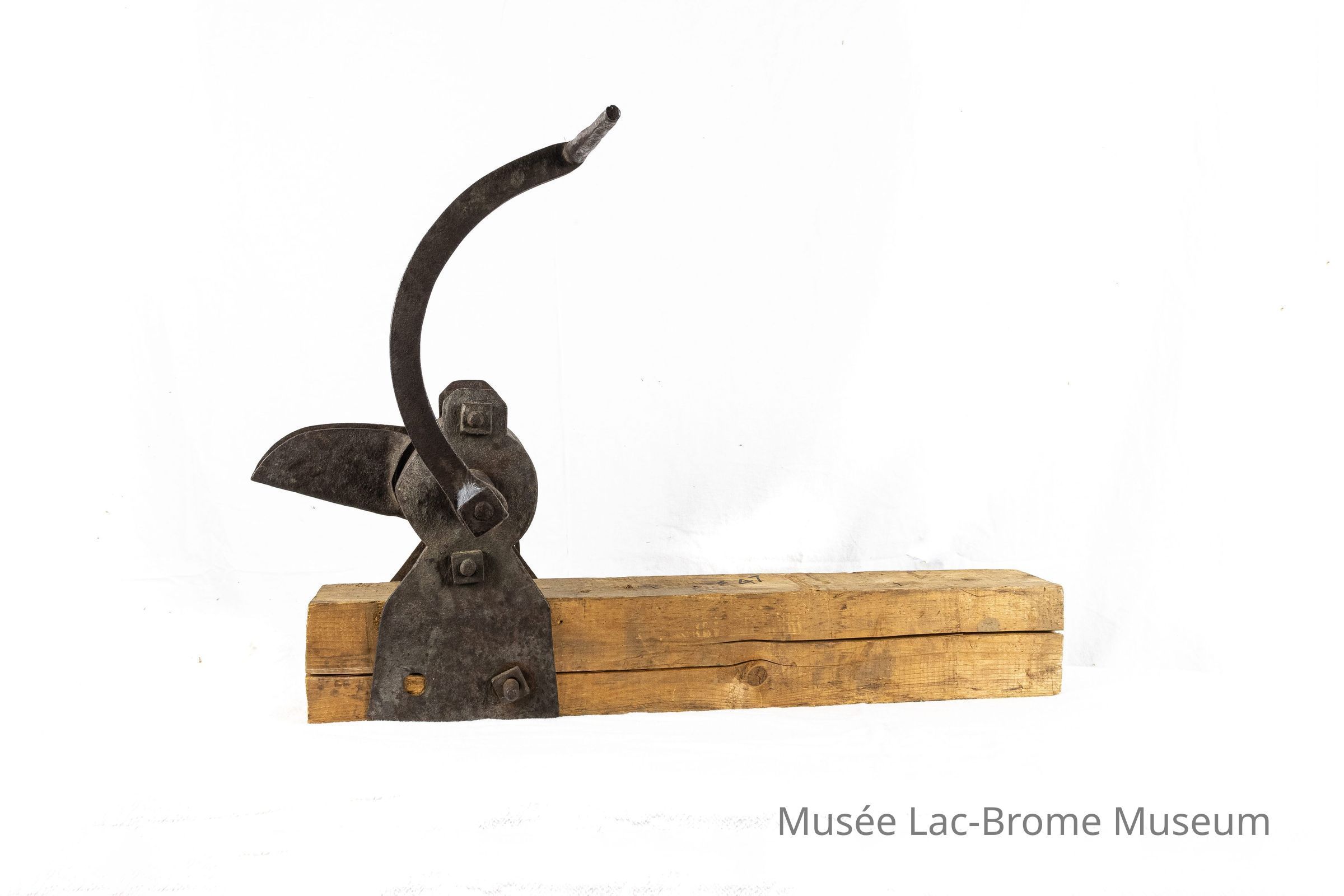 Though initially intended to be used as a coffee grinder, early settler to Potton, Nicholas Austin (1736-1821), turned it into an improvised flour mill. The handle of the grinder was attached to a waterwheel powered by a nearby brook. It could mill 8 bushels a day.