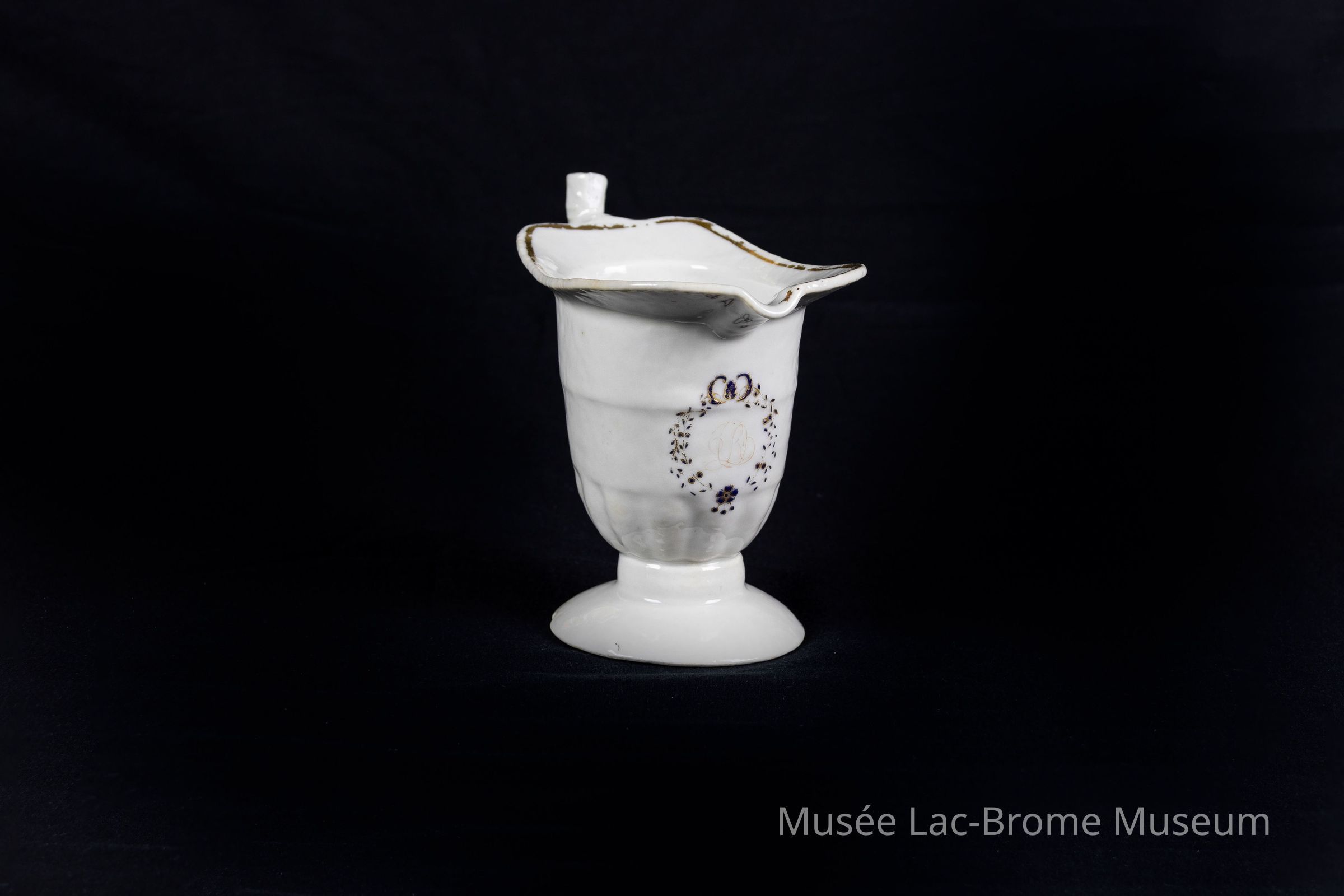 Cet pot à lait fait partie d'un service en porcelaine de 10 pièces. Elle appartenait au général Roswell Olcott (1768-1841) et à Lydia Sherman (1765-1835). Le monogramme sur la porcelaine est très probablement les initiales du couple, ce qui suggère que le service aurait pu être offert en cadeau de mariage.Collection