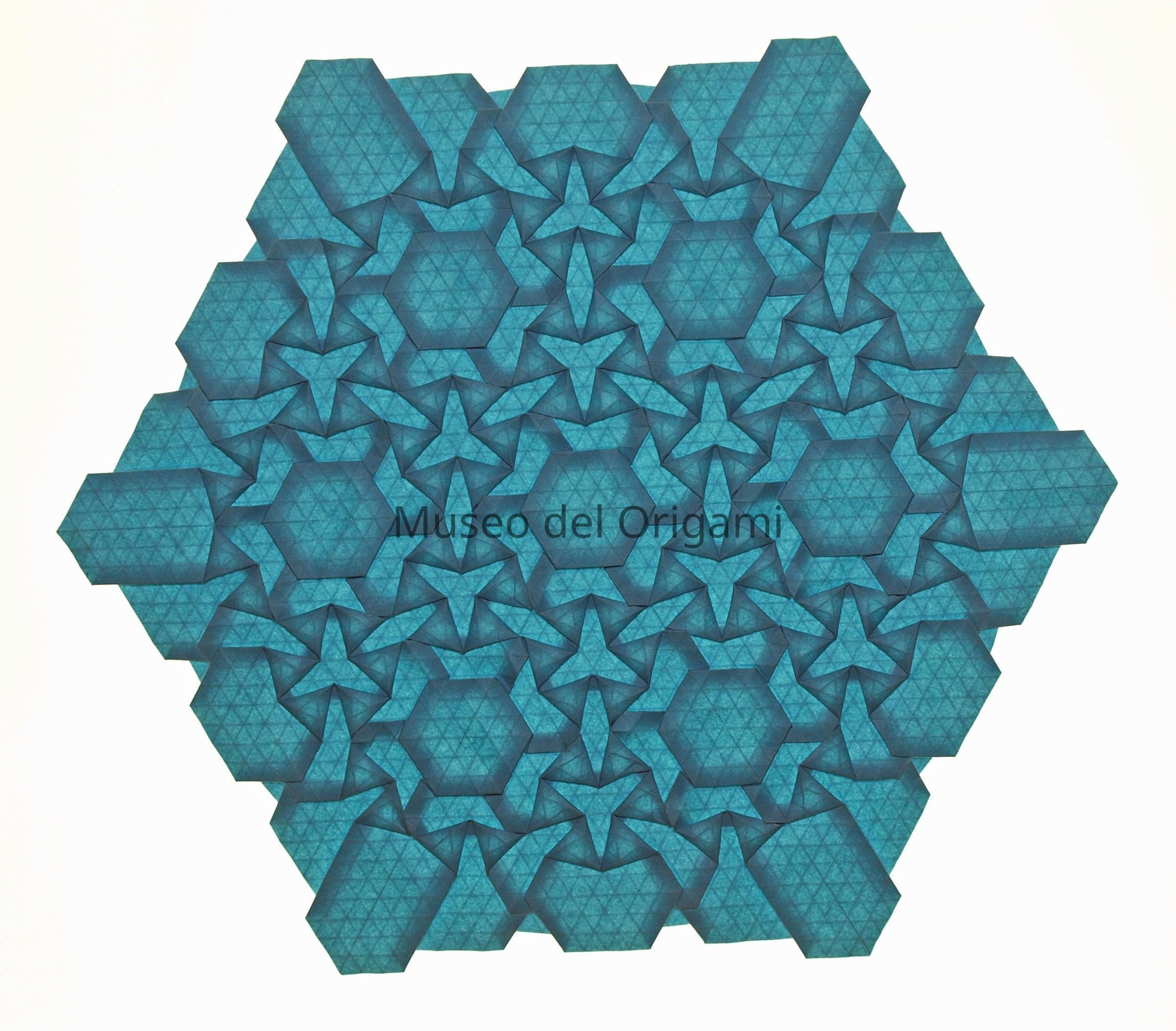Born in Madrid in 1955, Miguel Gañan studied aeronautical engineering and co-founded a software company. In 1997, he moved to Argentina, where he has lived since. He began exploring origami in 2007, focusing on modular designs inspired by Tomoko Fuse and snapology. In 2011, he discovered tessellations and started folding and designing his own. By late 2017, he created his first tessellation designs, expanding into boxes, closed cubes, and tatos. He has exhibited widely across Argentina, Spain, and Uruguay. He has published three books to date: Twist and Tess (2020), Twist on Twists (2022), and Twist on Boxes (2024).
