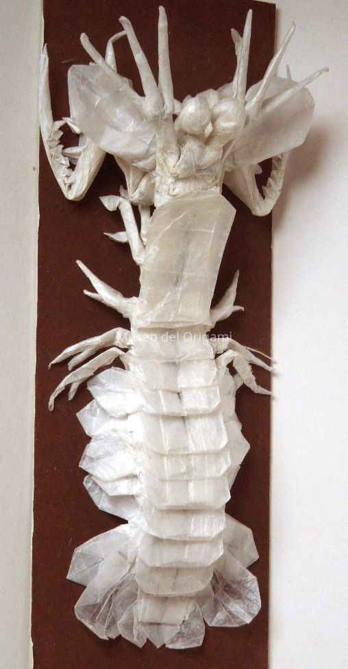 Lobster made from a 70 cm square of tracing paper, no cuts, no glue.Context