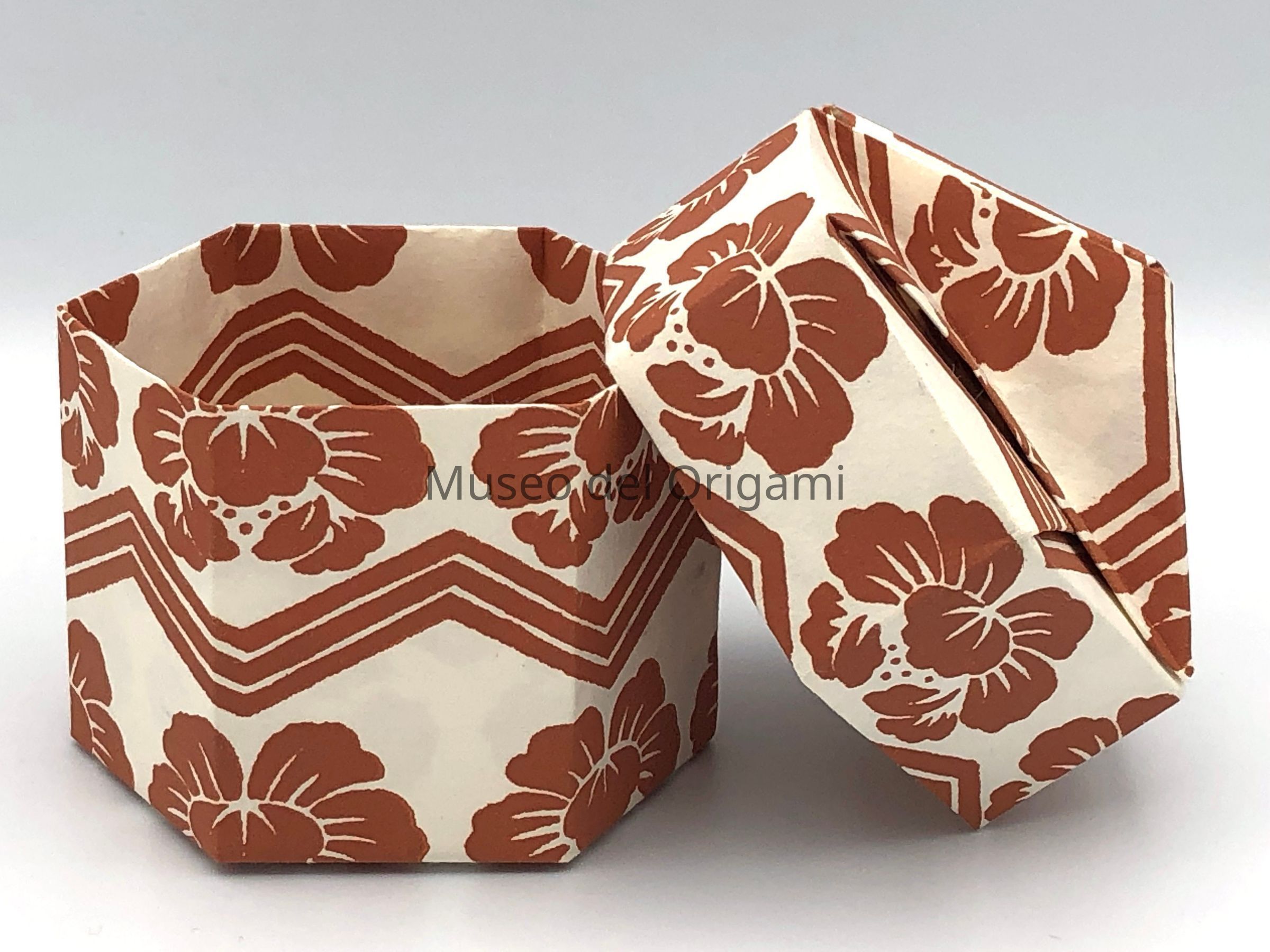Box composed of two parts: base and lid, each made from a sheet of Japanese washi paper (washi: hand-made paper, silkscreened)