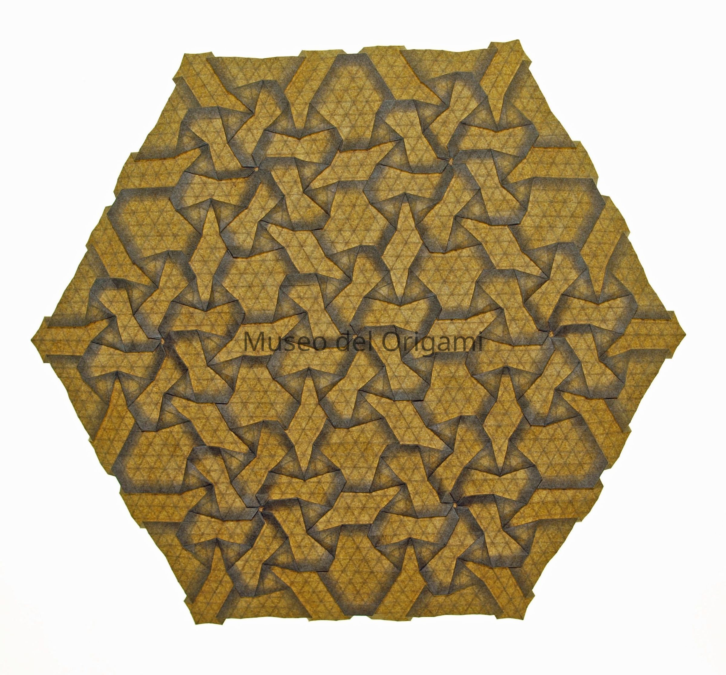 About the artist: Born in Madrid in 1955, Miguel Gañan studied aeronautical engineering and co-founded a software company. In 1997, he moved to Argentina, where he has lived since. He began exploring origami in 2007, focusing on modular designs inspired by Tomoko Fuse and snapology. In 2011, he discovered tessellations and started folding and designing his own. By late 2017, he created his first tessellation designs, expanding into boxes, closed cubes, and tatos. He has exhibited widely across Argentina, Spain, and Uruguay. He has published three books to date: Twist and Tess (2020), Twist on Twists (2022), and Twist on Boxes (2024).
