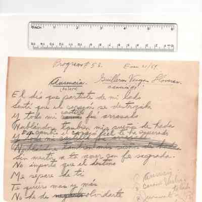 Lírica transcrita de la canción titulada "Ausencia" por el autor puertorriqueño Guillermo Venega Lloveras.