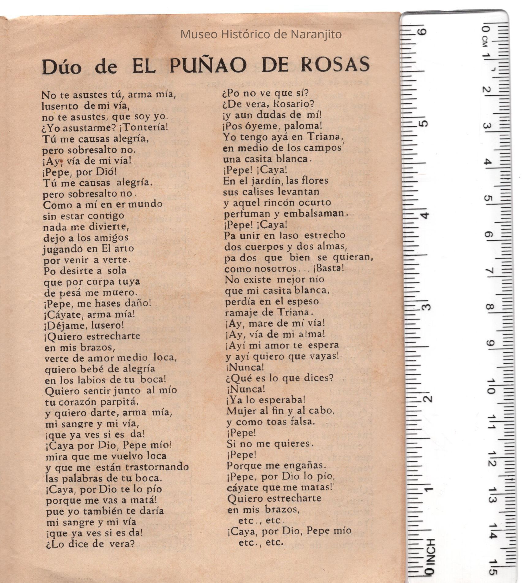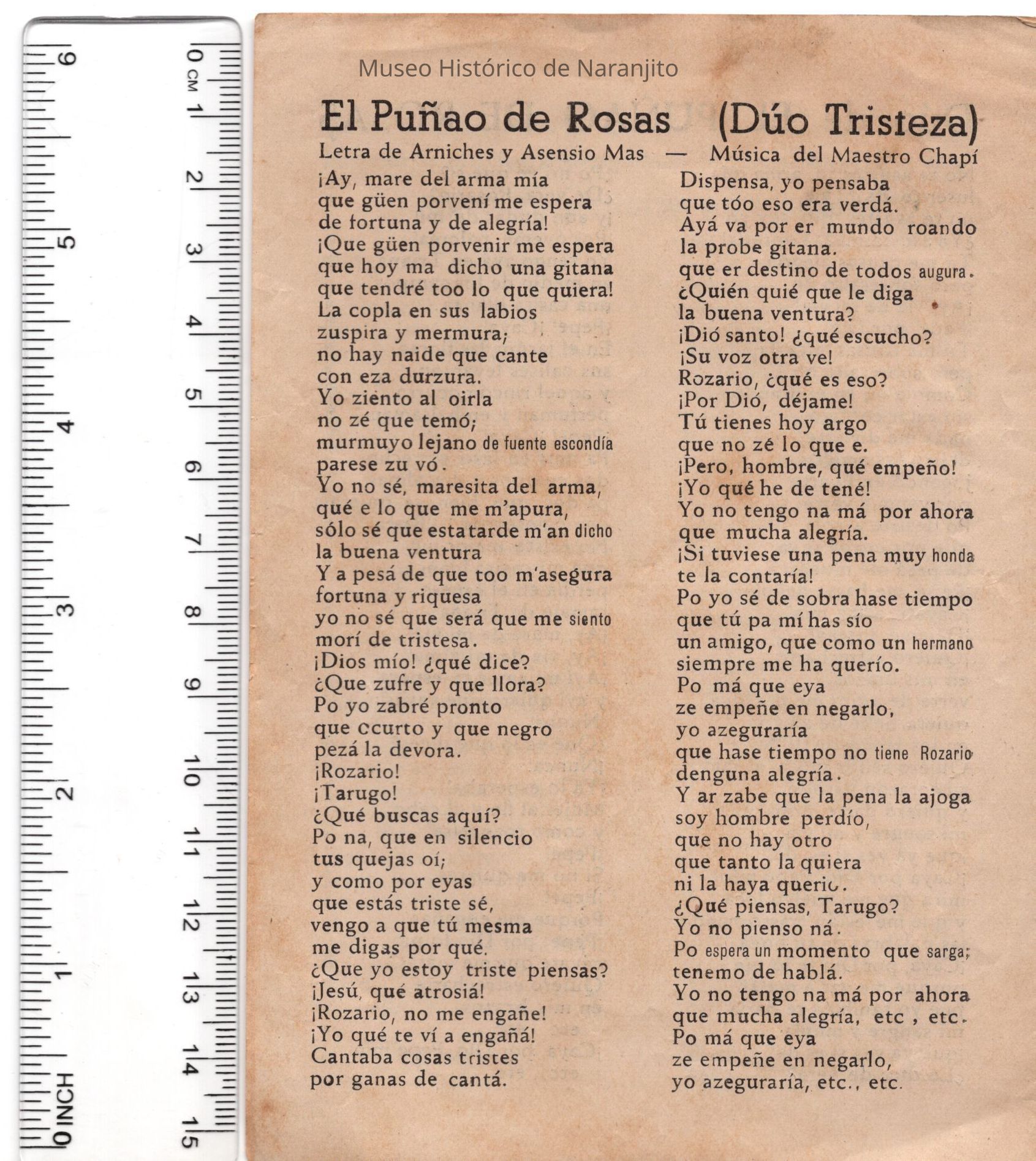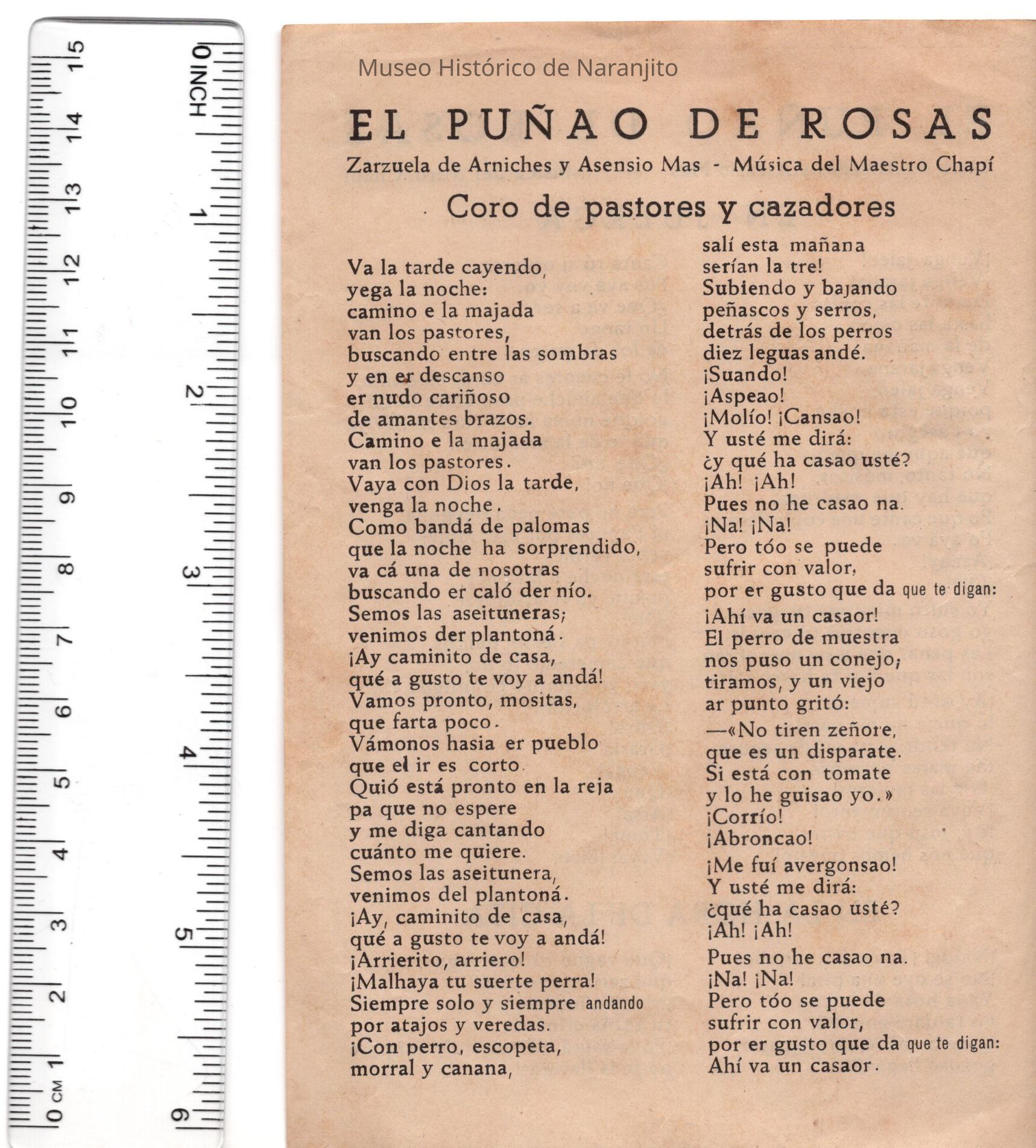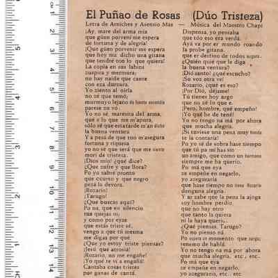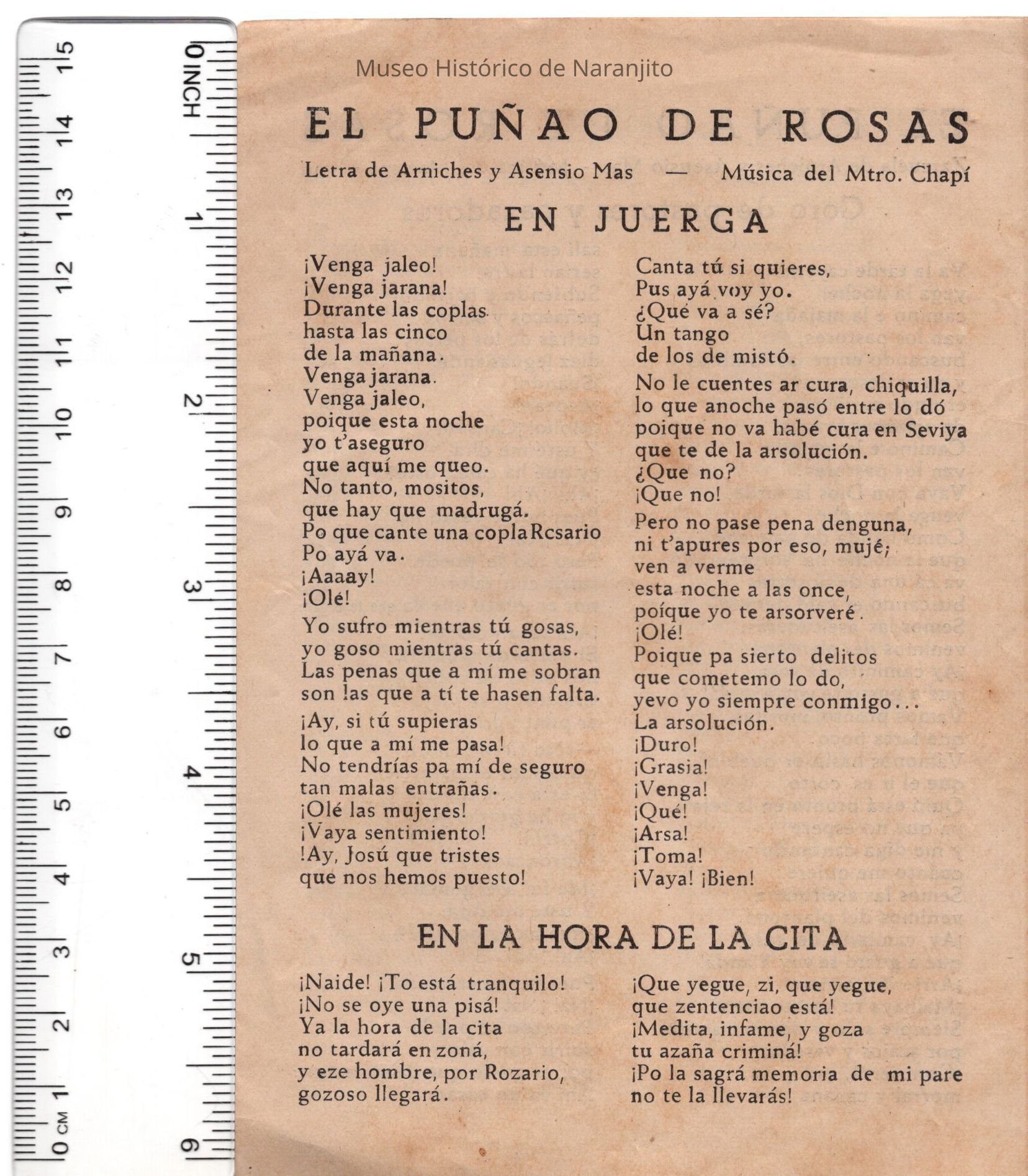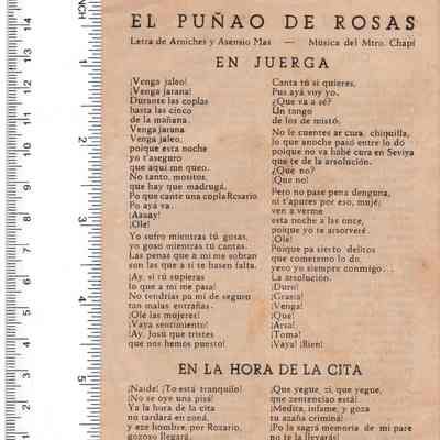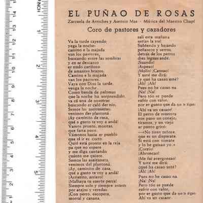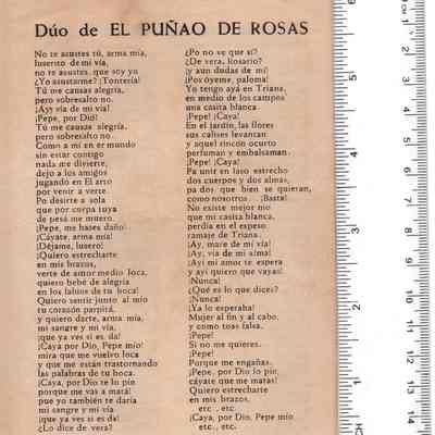 Zarzuela bajo el nombre "El Puñao de Rosas" hecha por los libretistas españoles Carlos Arniches y Ramón Asensio Mas, con la música del maestro Ruperto Chapí. Esta obra fue estrenada en octubre 30 del 1902.Collection