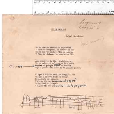 Lírica y partitura transcrita de la canción "Me la pagarás" del compositor puertorriqueño Rafael Hernández.