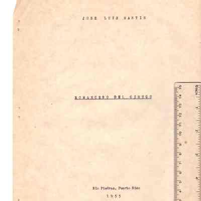 Libro de romances titulado "Romancero del Cibuco", escrito por el autor puertorriqueño José Luis Martín. El cual fue dirigido a el humanista puertorriqueño Francisco (Paquito) López Cruz.Collection