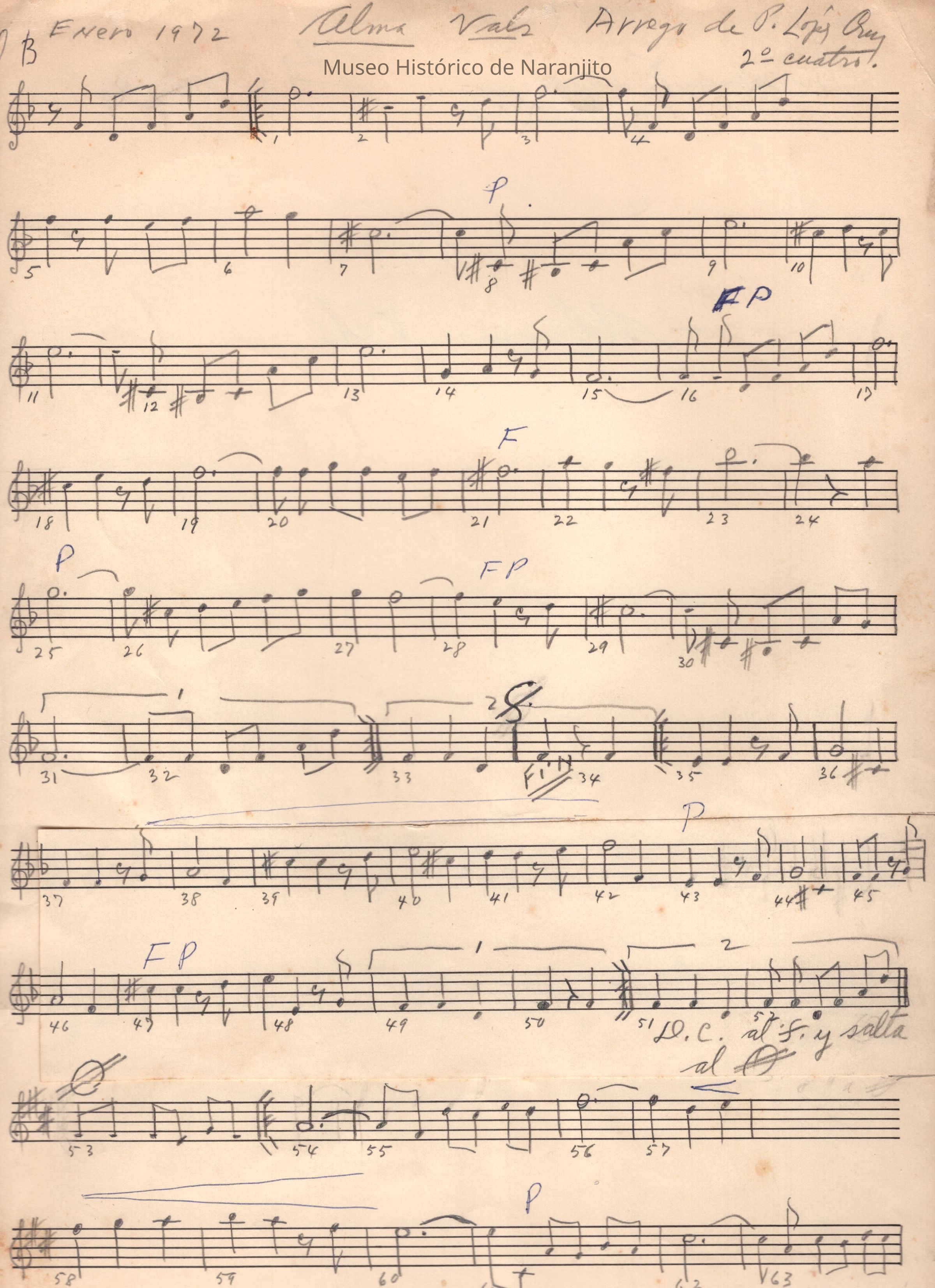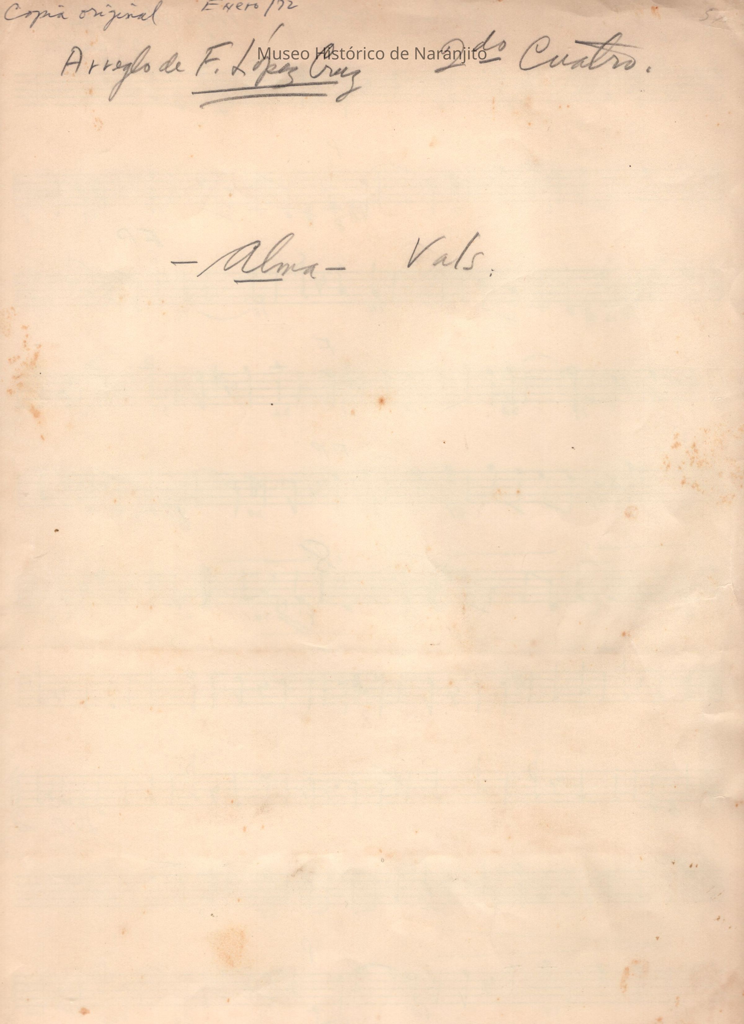 Arreglo para el cuatro puertorriqueño por Francisco (Paquito) Lopez Cruz de la canción alma vals.