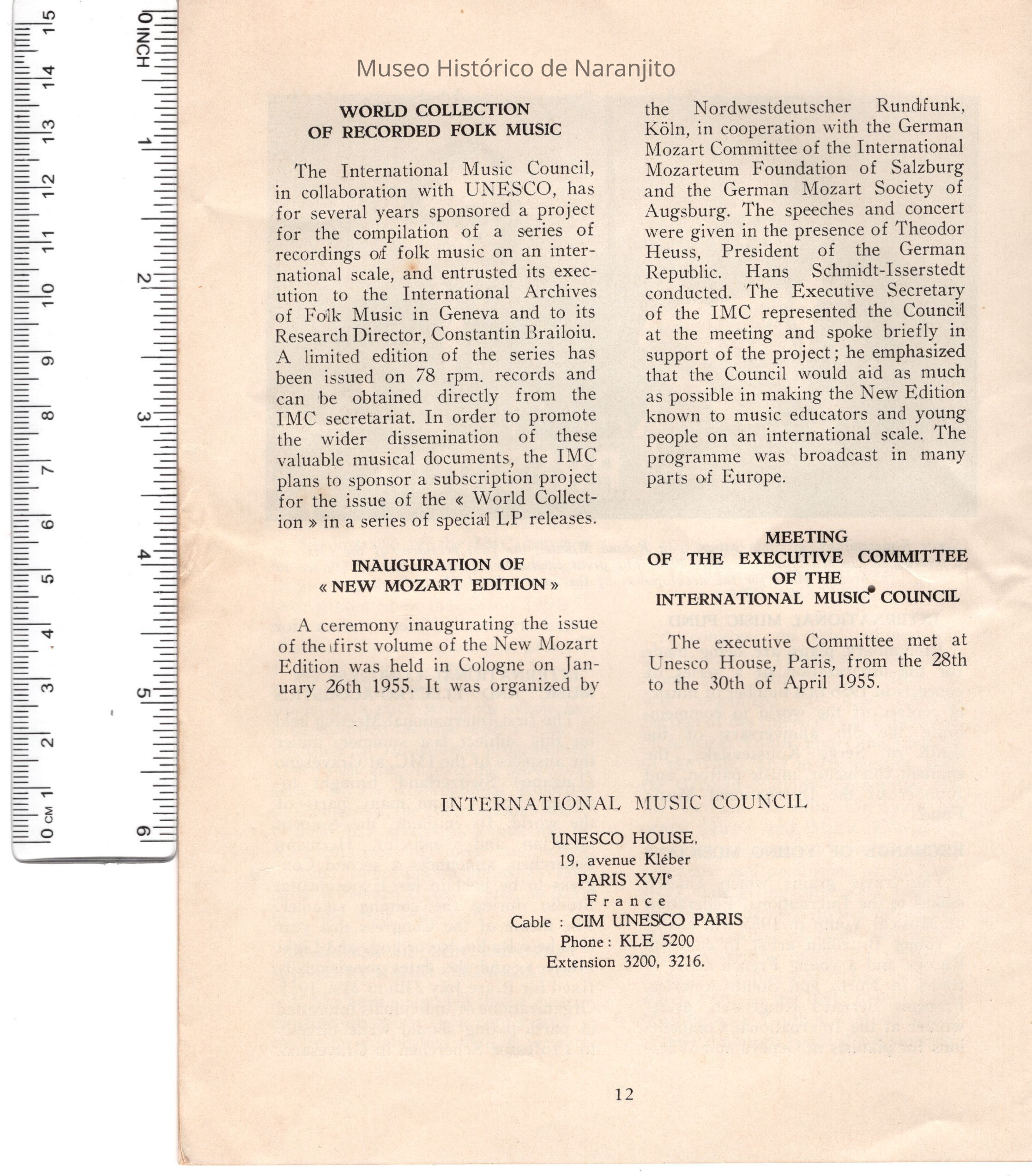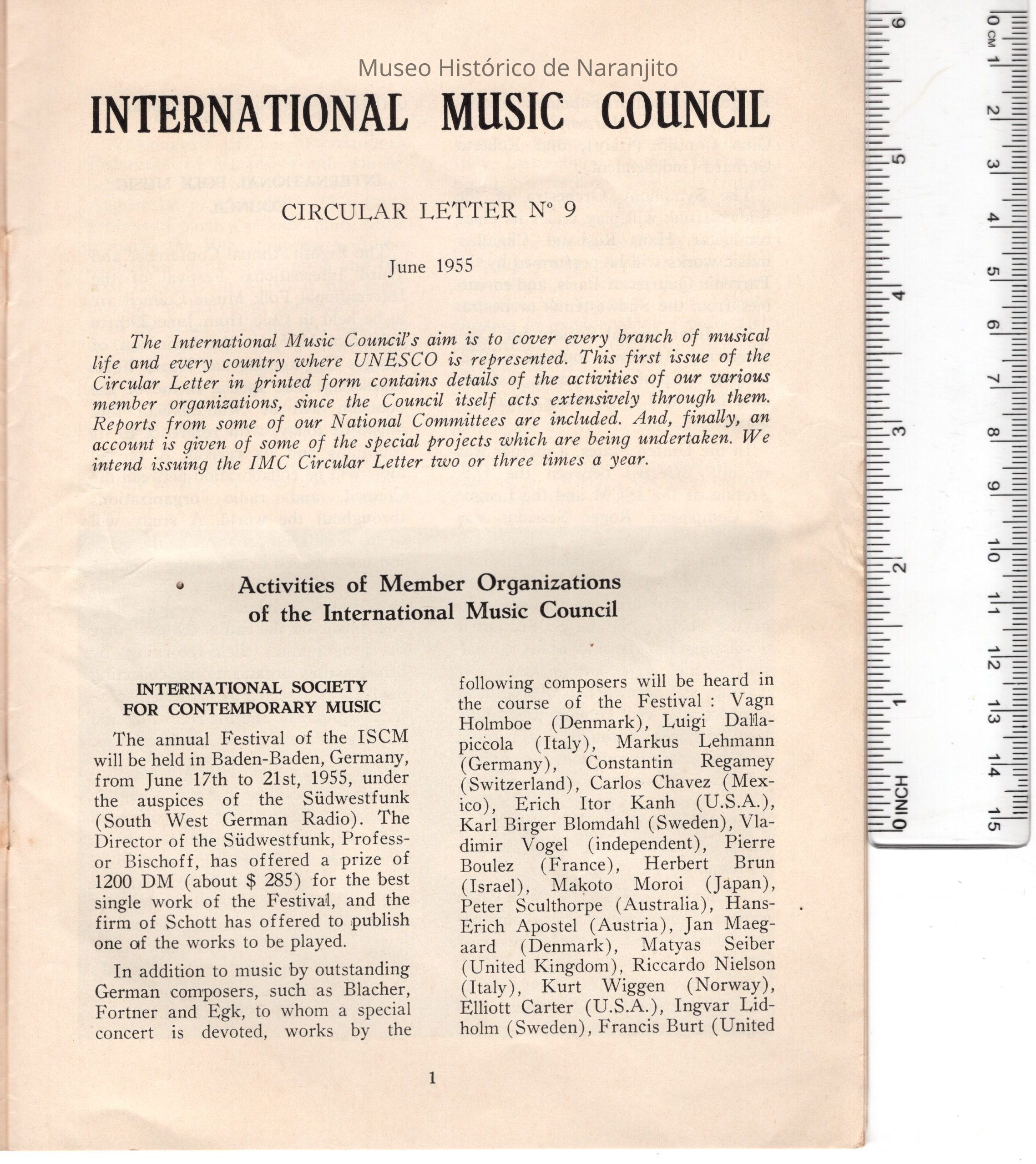 Carta circular International Music CouncilEntry/Object ID