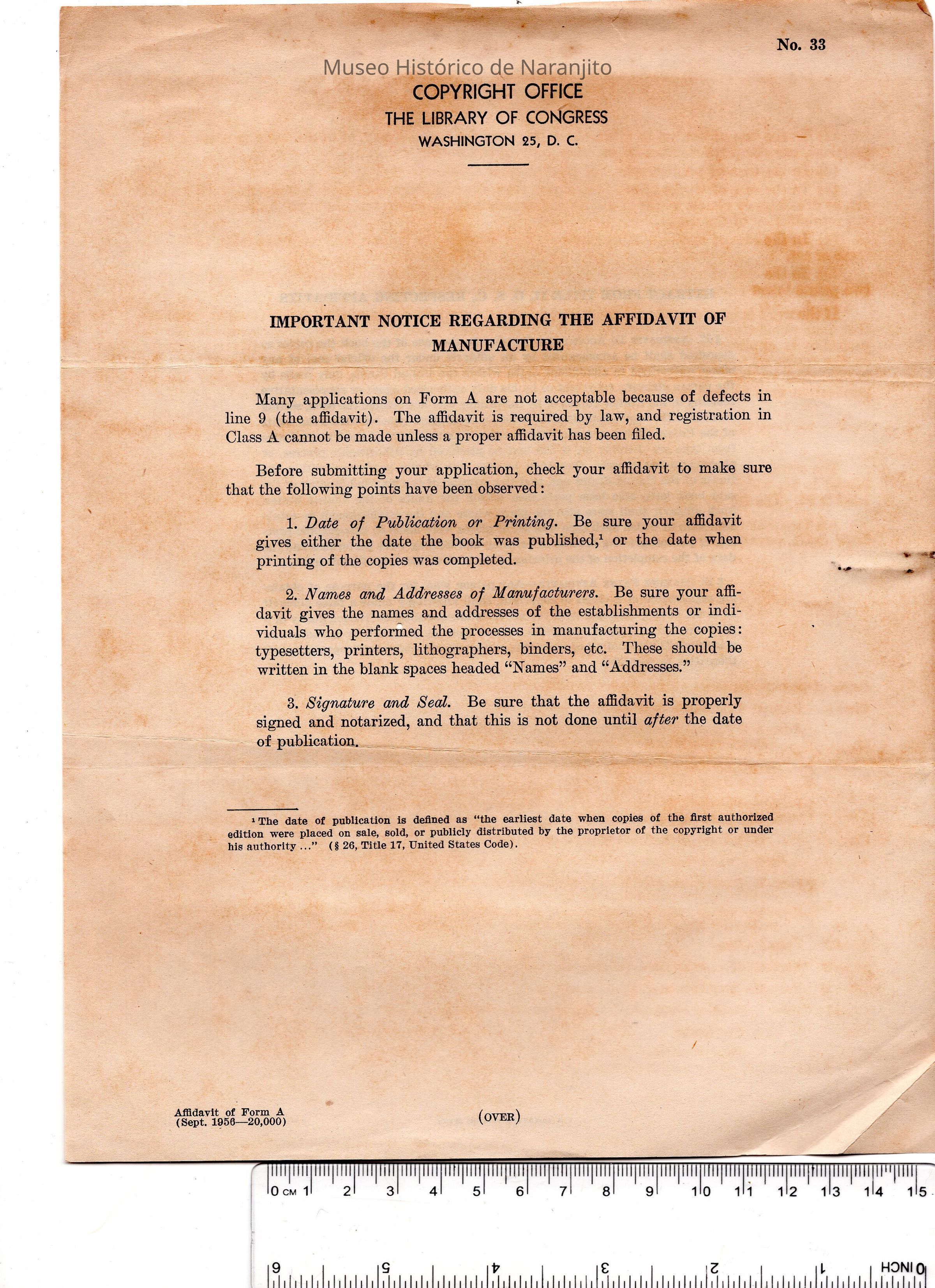 Documento escrito por The Library of Congress (Copyright Office) acerca de las instrucciones y procedimiento necesario para someter un affidavit.Collection