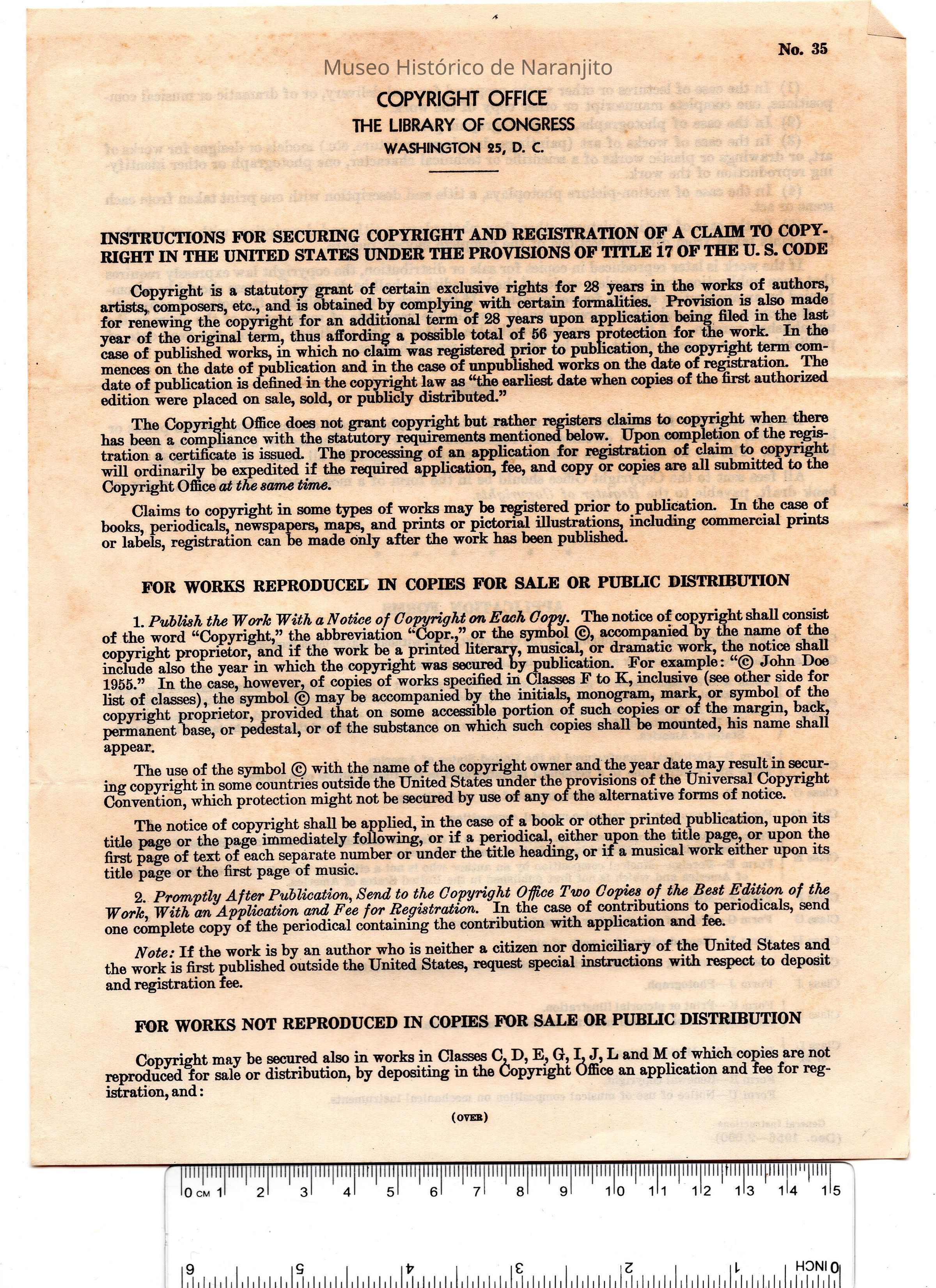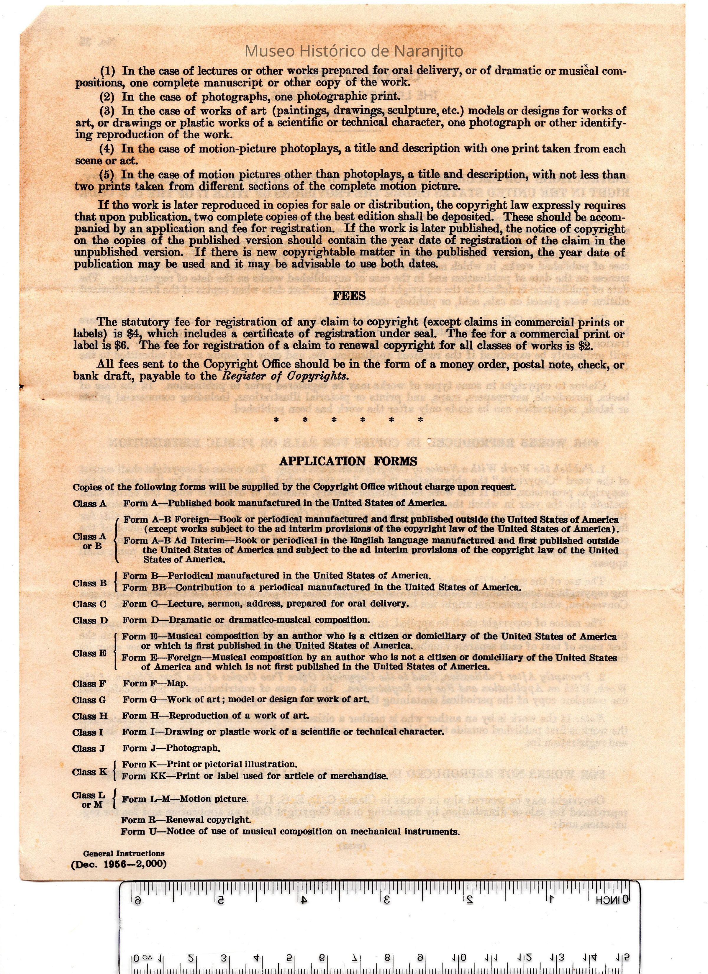 Documento escrito por The Library of Congress (Copyright Office) sobre instrucciones para someter una solicitud de derchos de autor.Collection