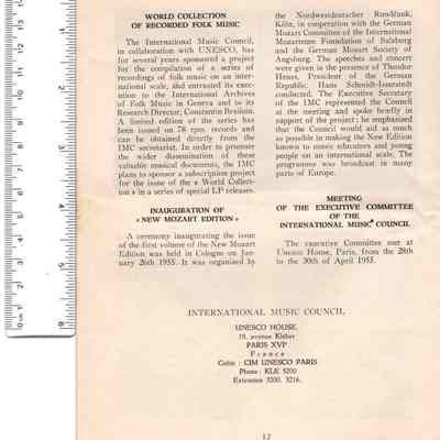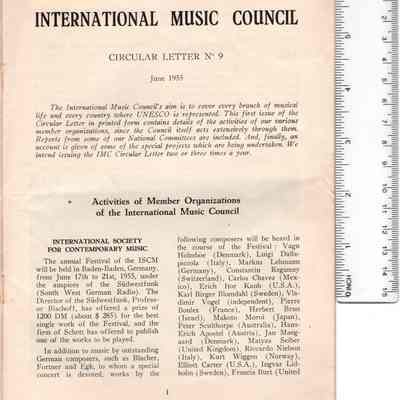 Carta circular International Music CouncilEntry/Object ID