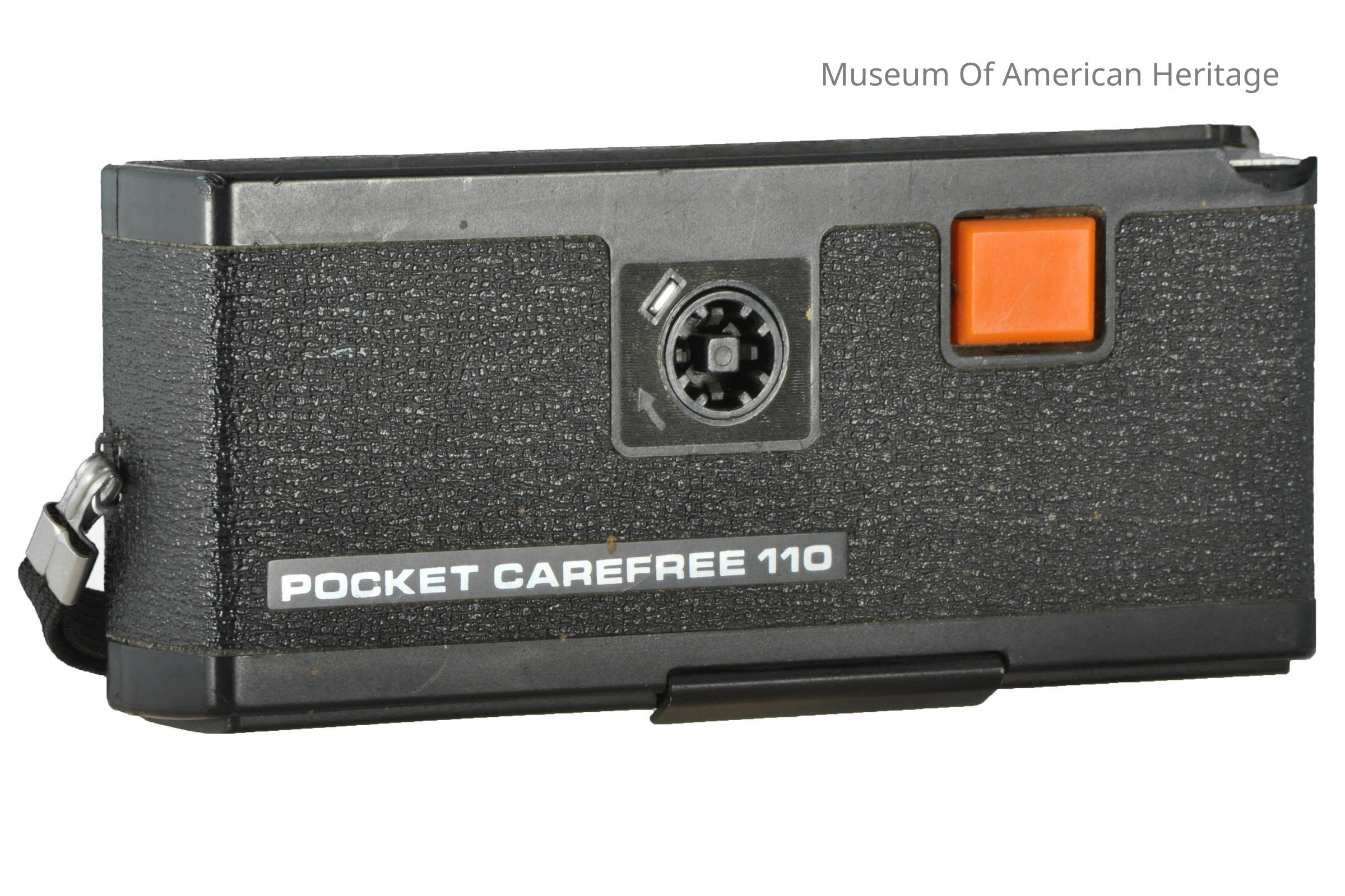 Magicube flash, drop in 110 film cartridge, orange trigger button, cloth hand strap.