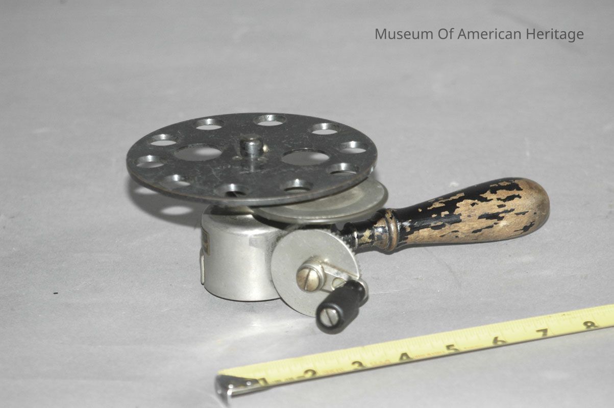Two sets of holes for viewing, RPM indicator, belt driven, hand crank.