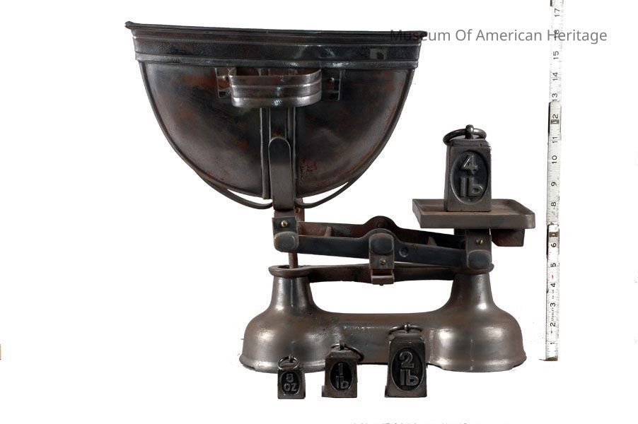 Large scoop, 4 weights, 8 oz,1, 2, 4 pounds, probably used in hardware store.