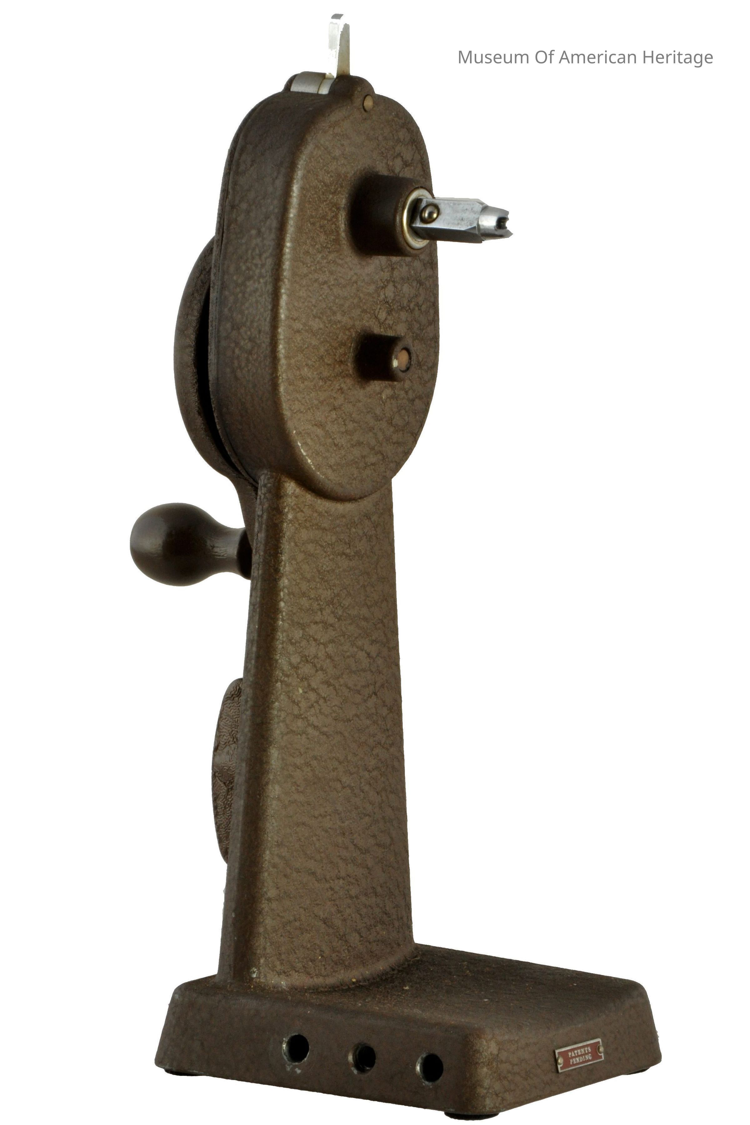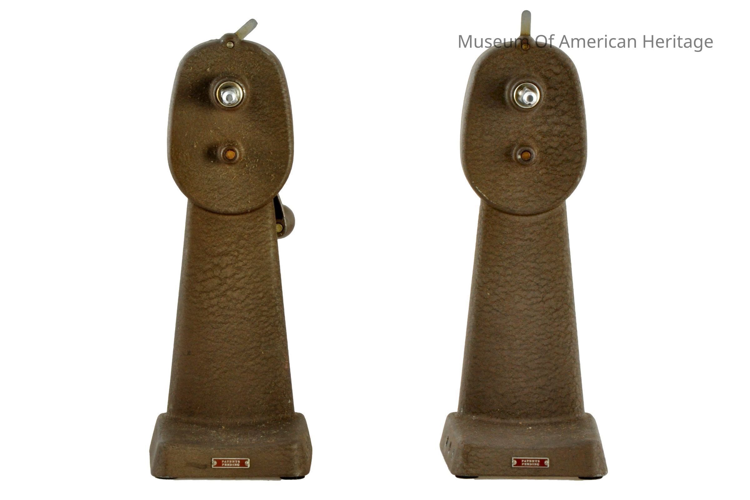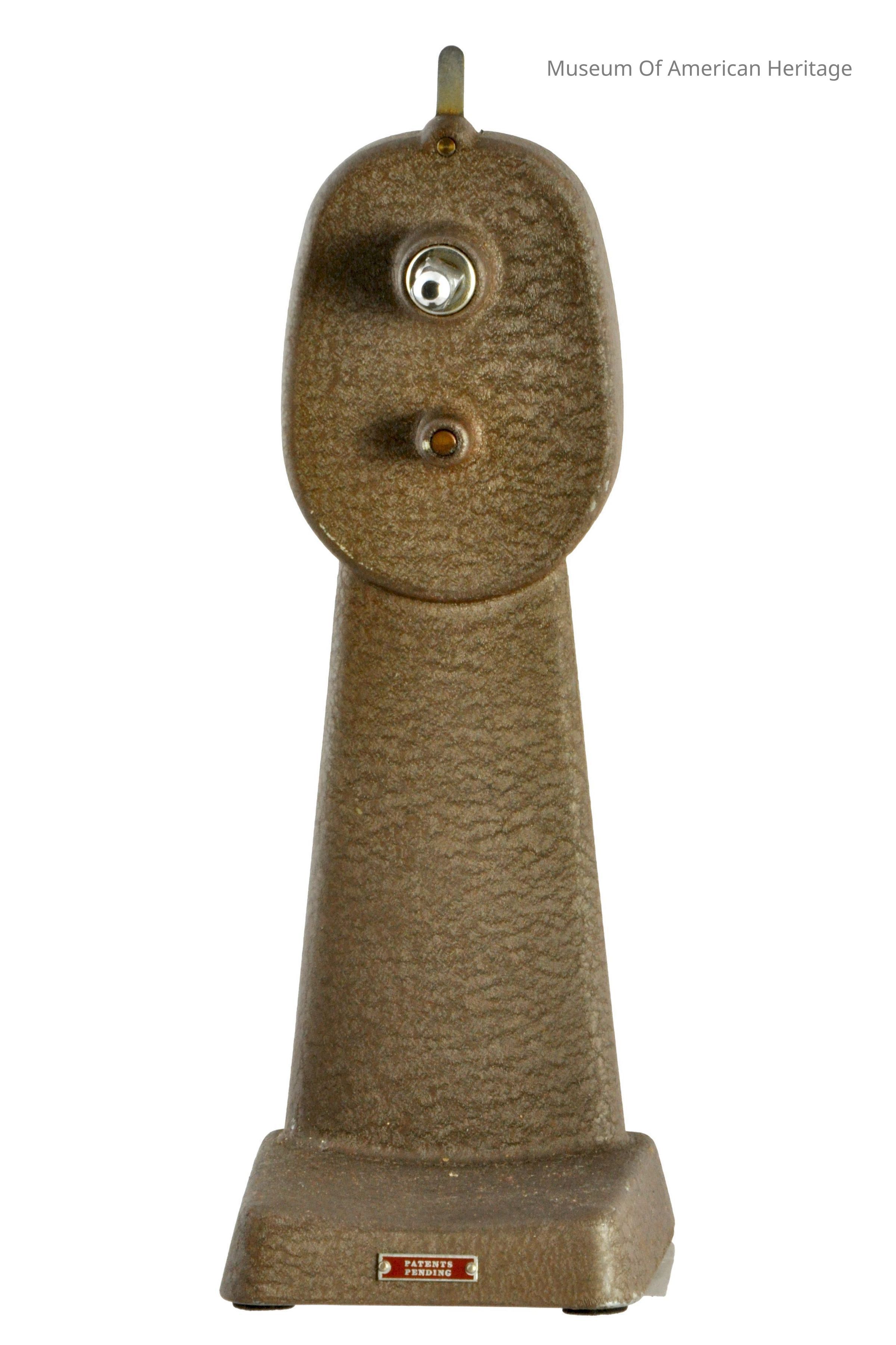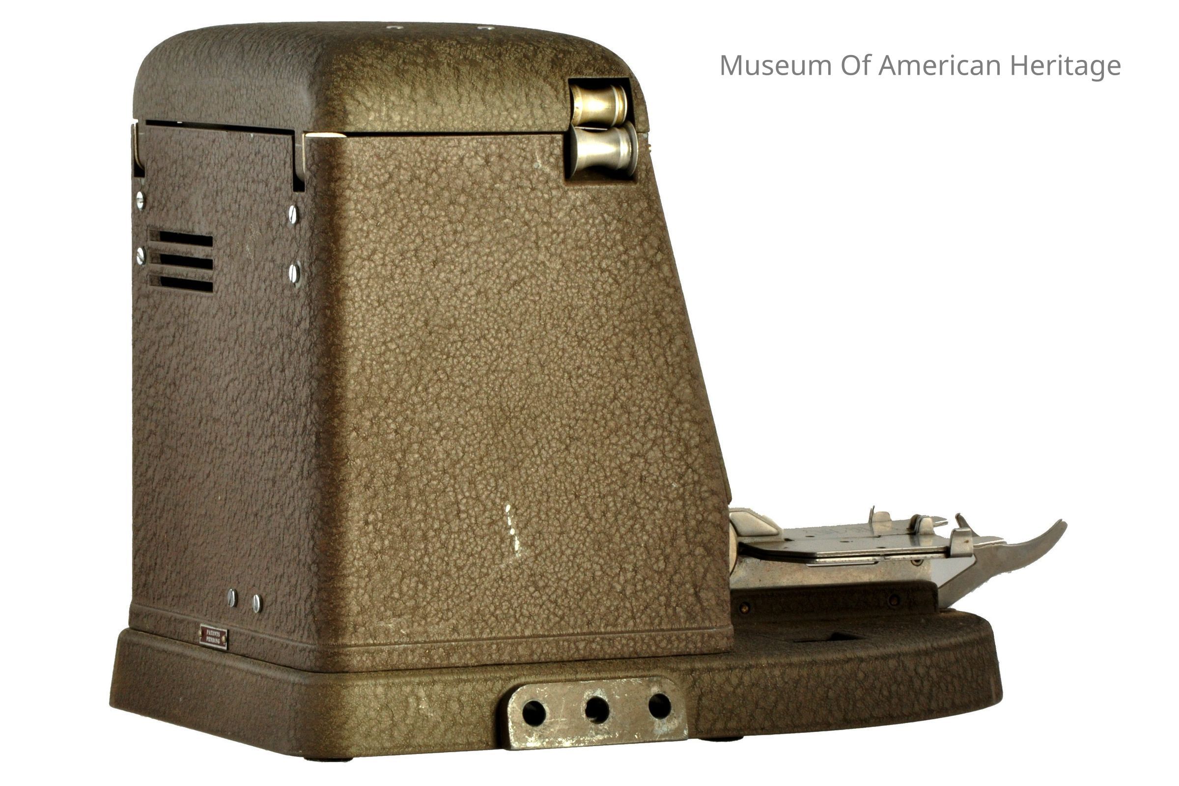 Slow/fast control, hand crank, 10 long rods connecting the two wind capstans to the viewer.