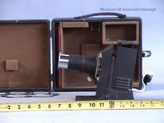 Metal side holder, adaptor for film strips, felt-lined in black case.
