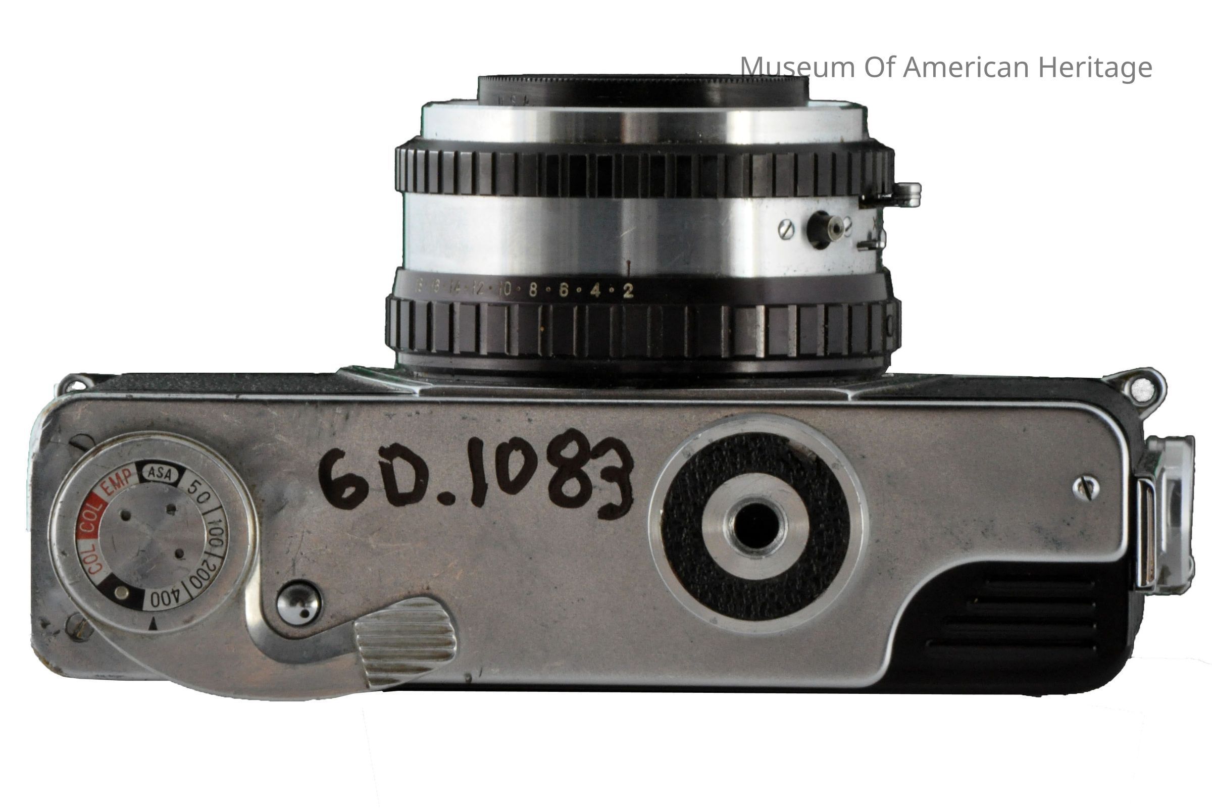 Semi-automatic, lens aperture and shutter speed can be set for light values from a meter, 45mm f2.8 lens.