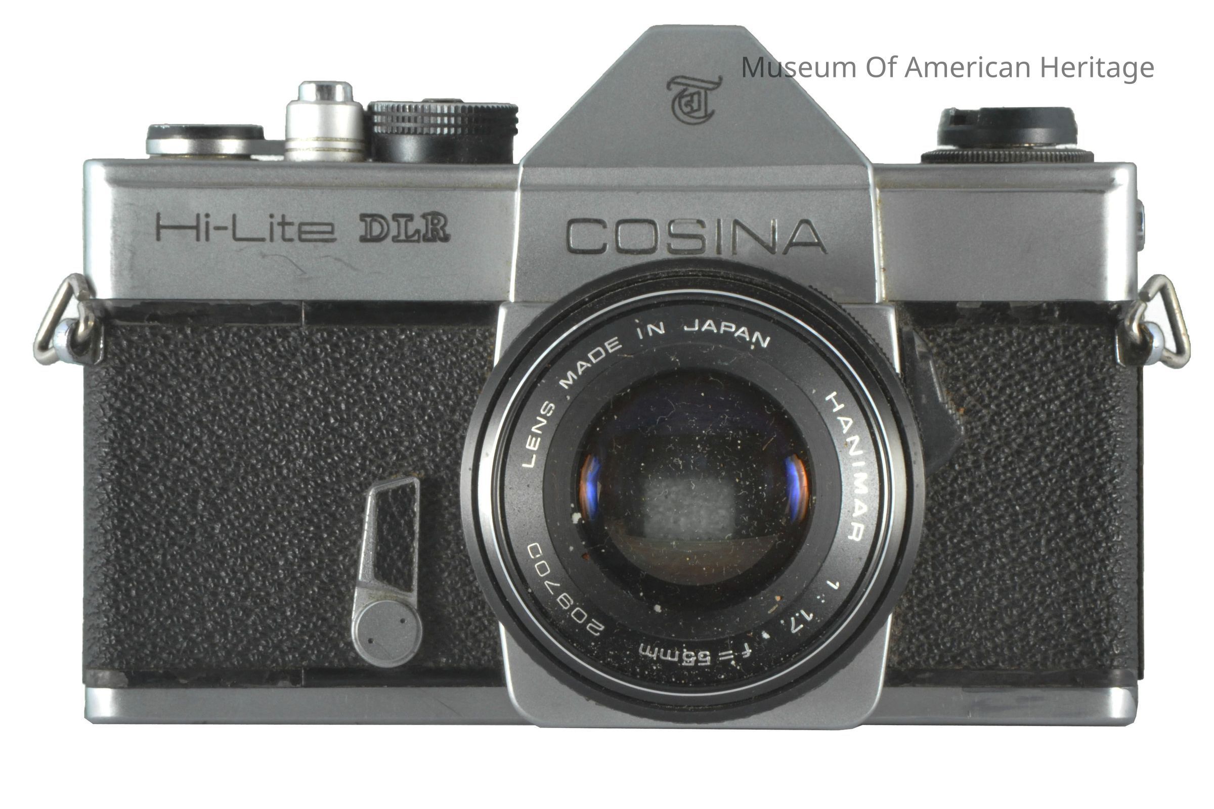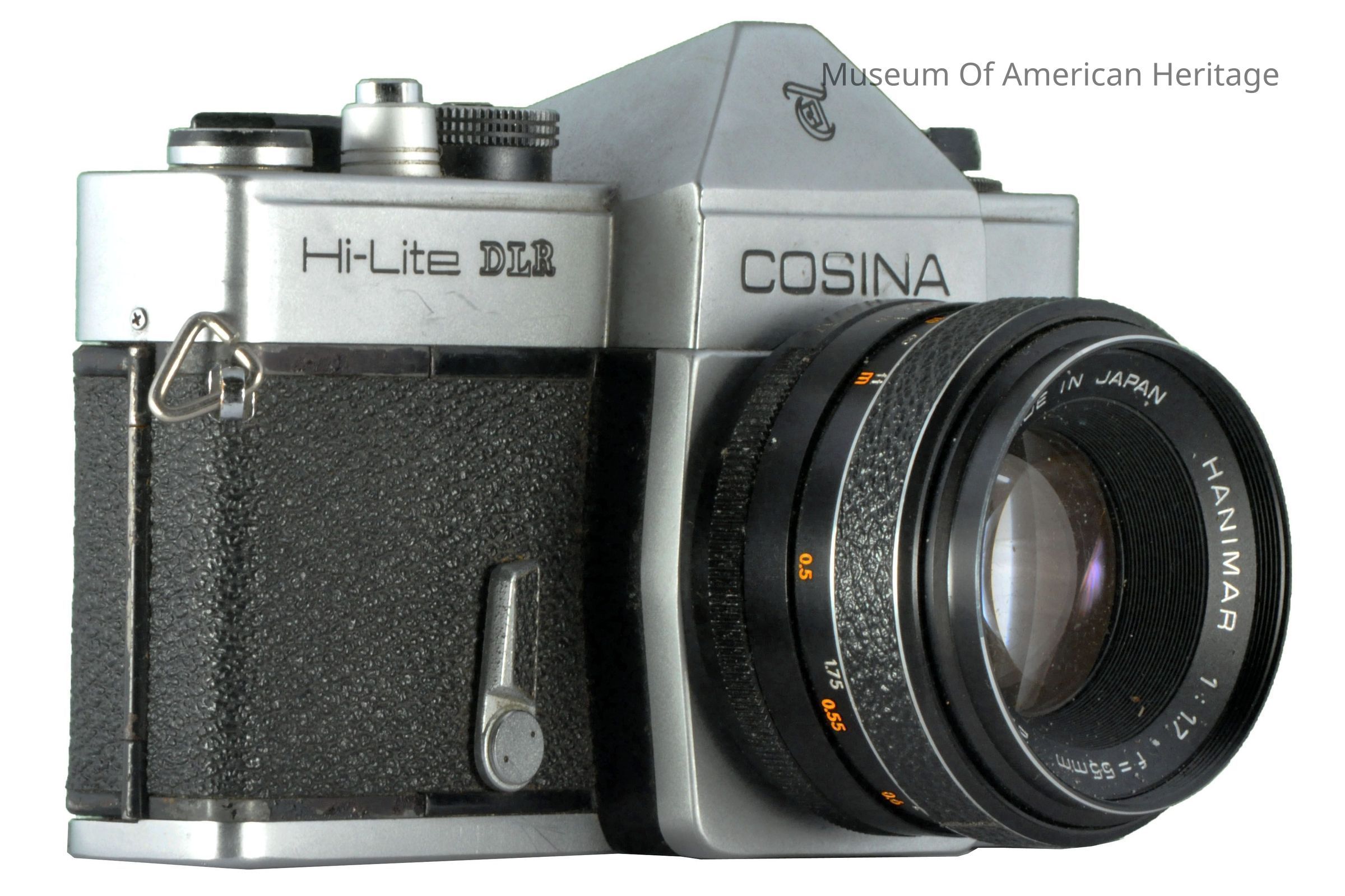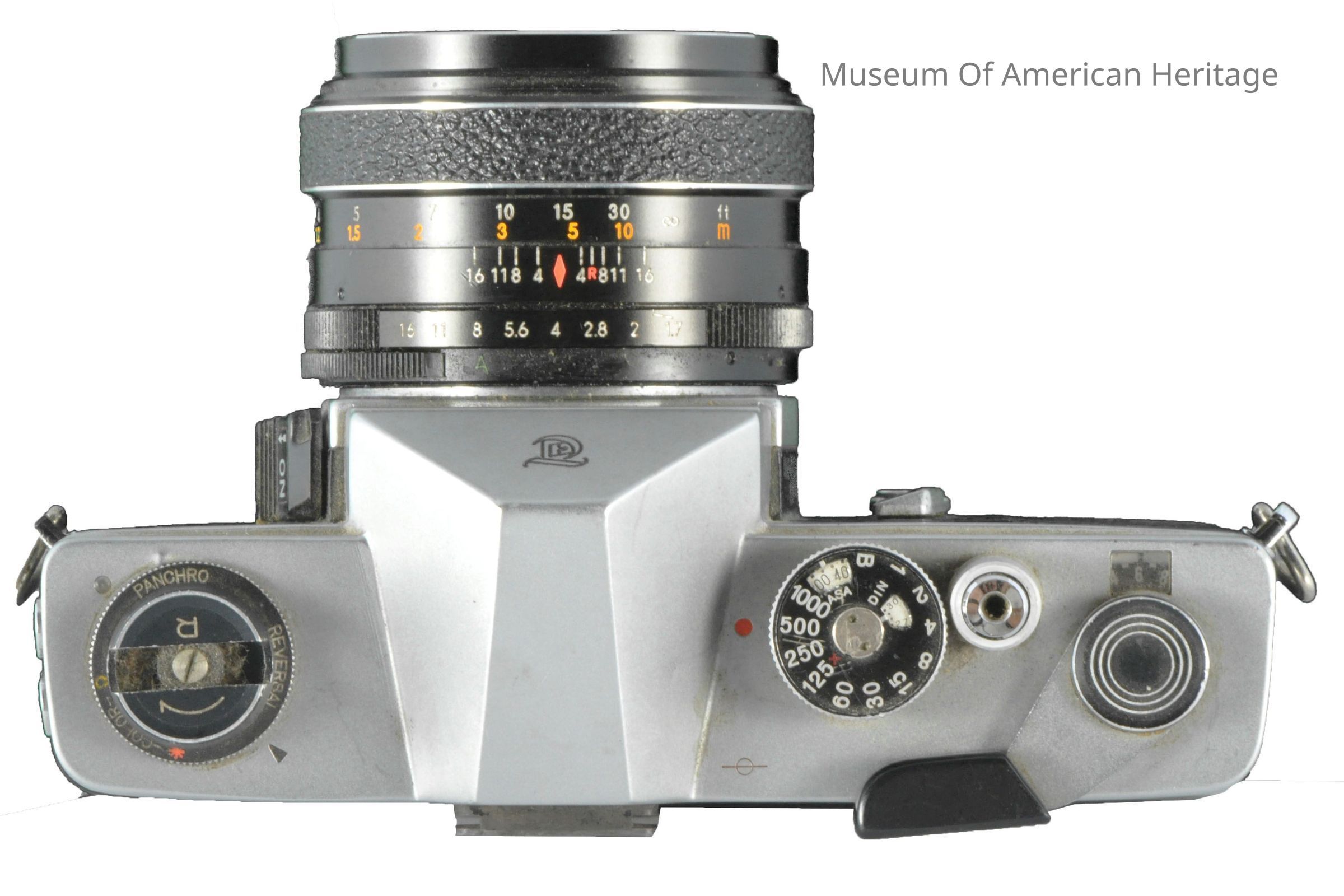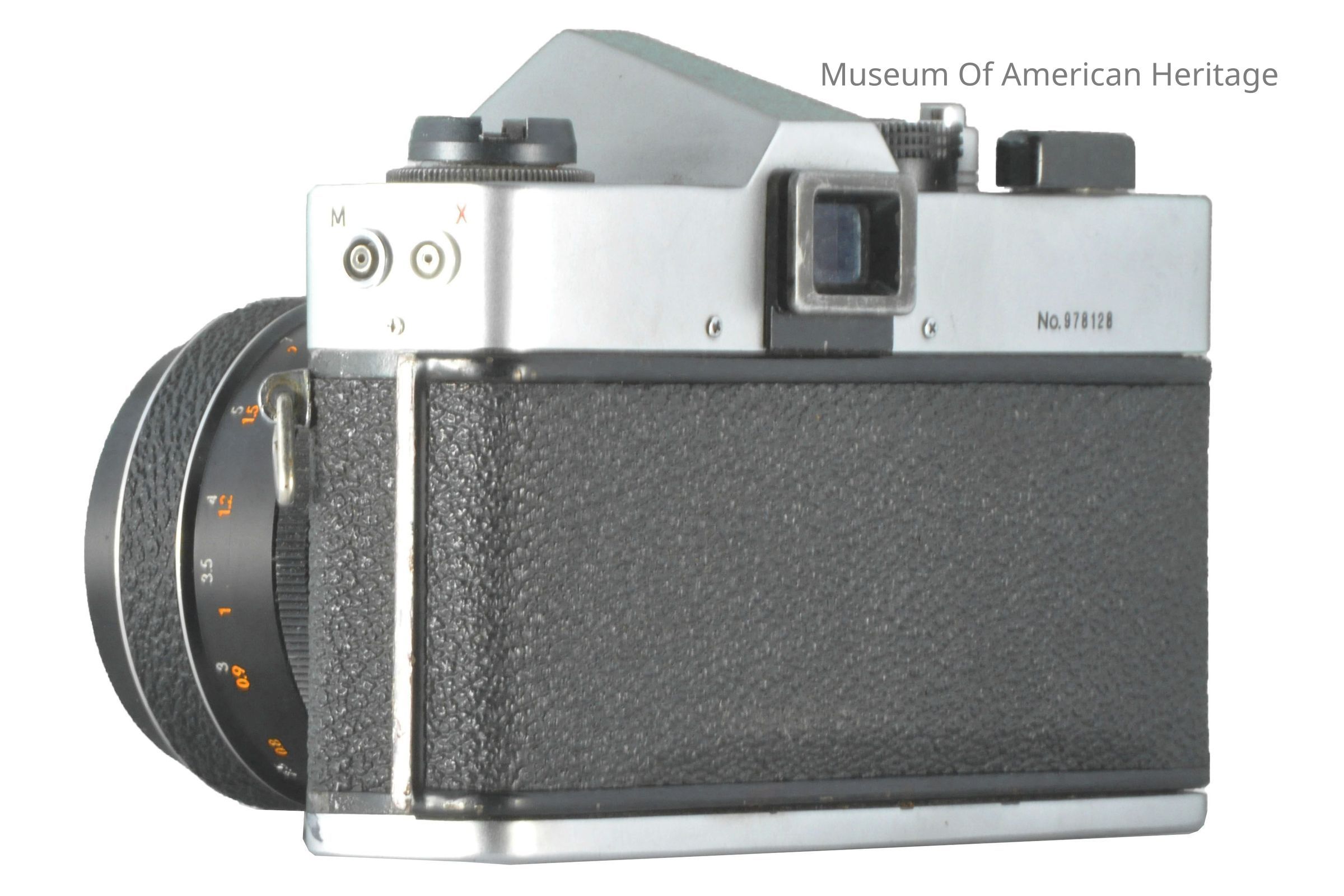 Single lens reflex, square metal focal plane shutter, depth of field preview, TTL CdS meter, lever wind.