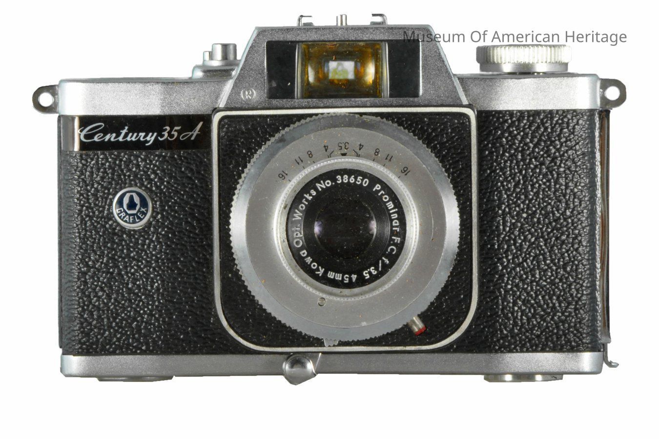 Kowa Optical Works lens #38650, Prominar 3.5 f:3.5 lens, Graflex logo on front.