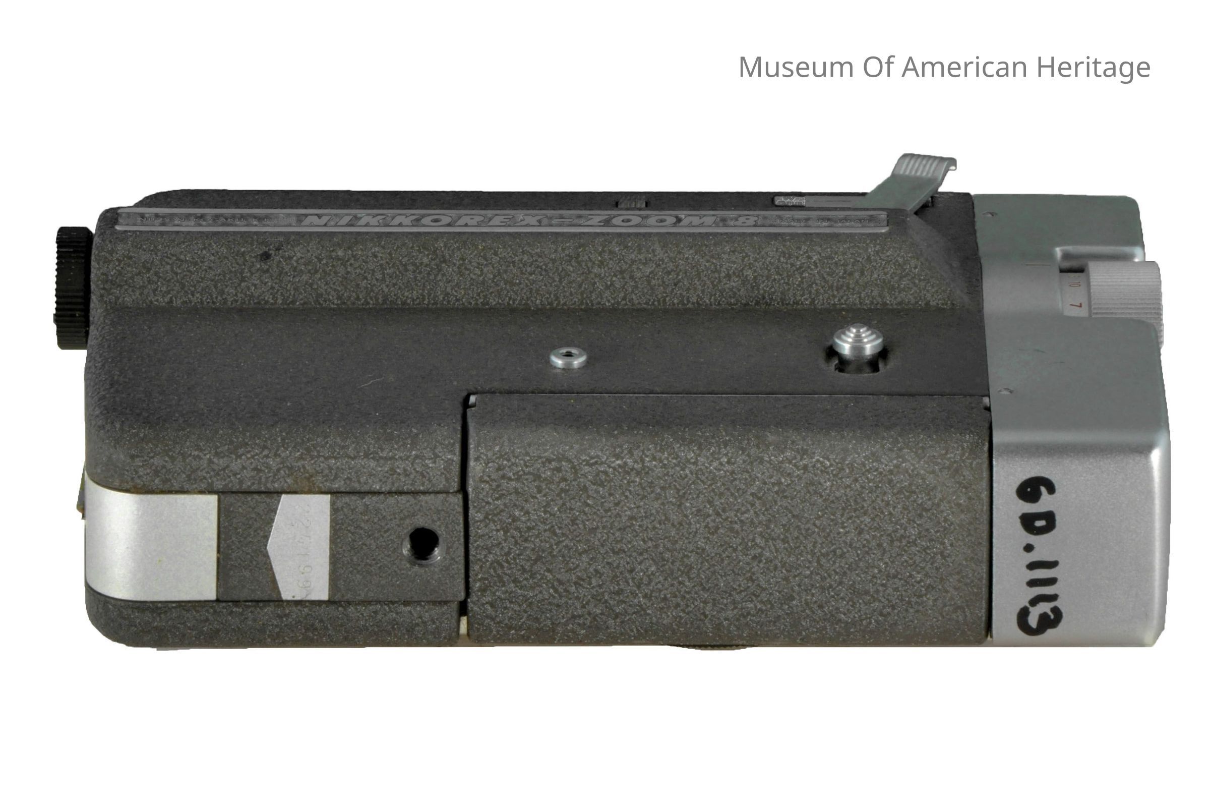 Cine-Zoom Nikkor 8-32mm lens, electric drive, four batteries. Two 6v button batteries for automatic exposure meter.