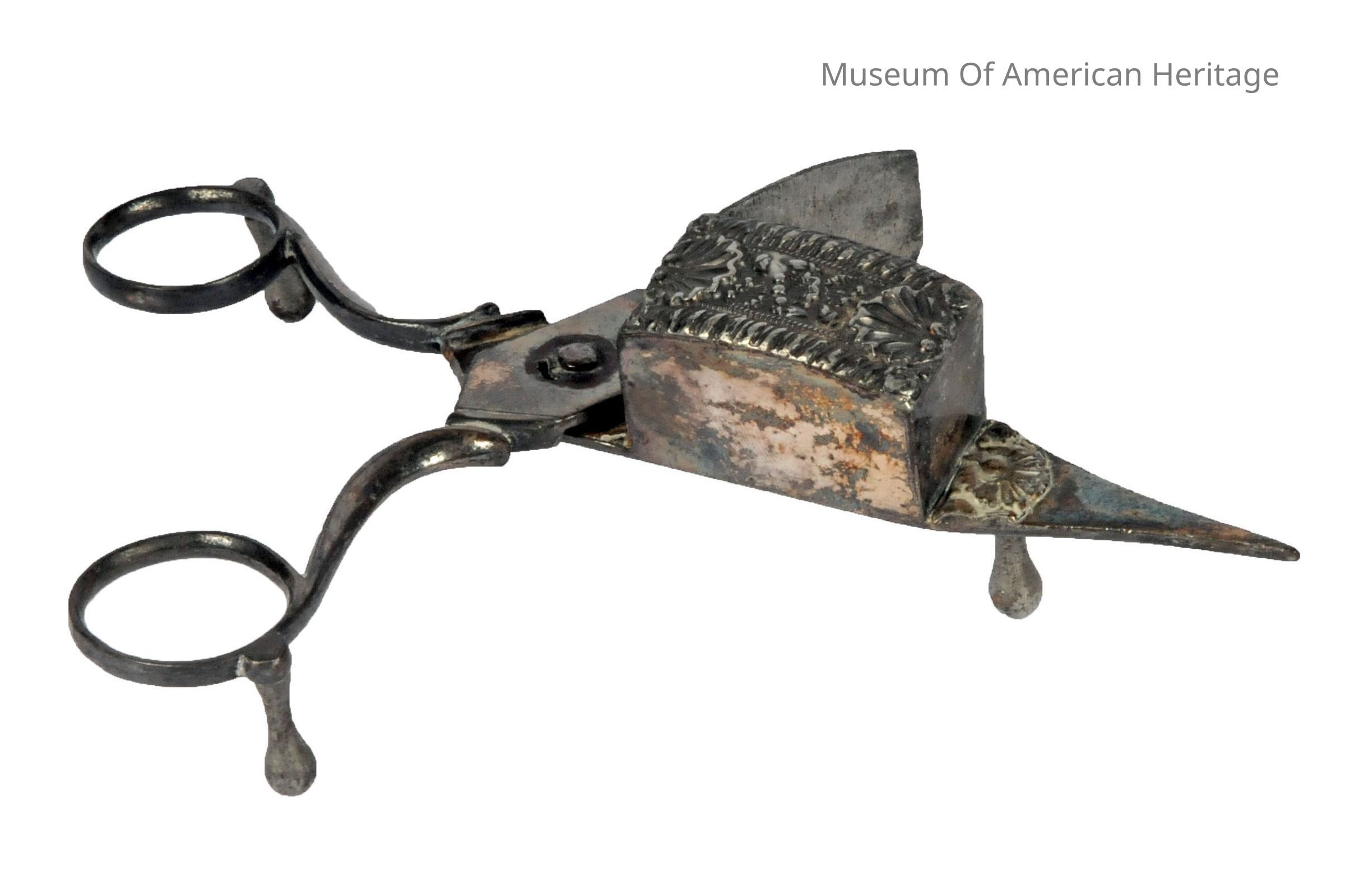 Scissors like action, pointed end 6 1/2 to pull wick, box to capture cut wick.