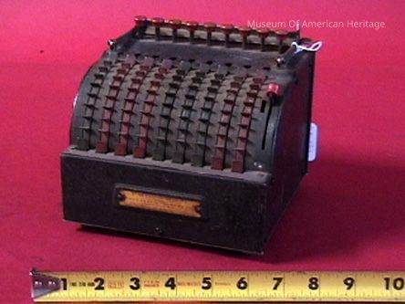 Non-printing, carrying handle/lock out bar (to prevent someone using while in use), manual, levers move to numbers.