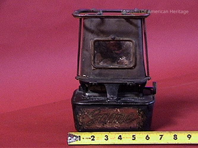 Liquid fuel-alcohol or kerosene, top tilts, wick burner, Caboose Stove ? Sad iron heater?
