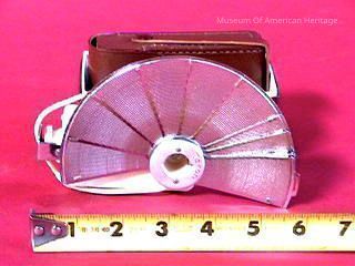 In leather case, reflector fans out, in original red box, folding.