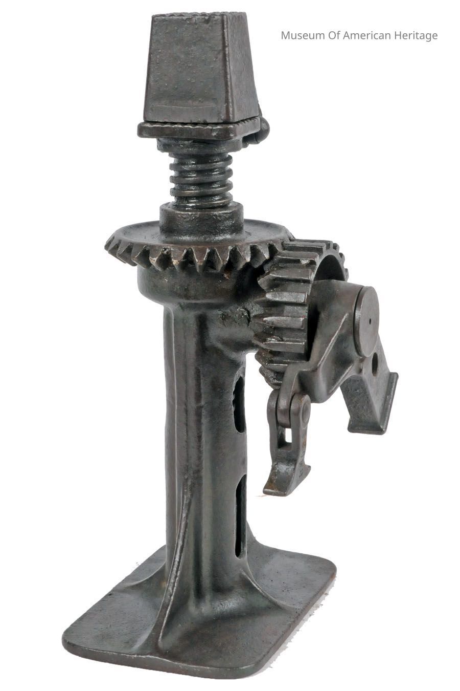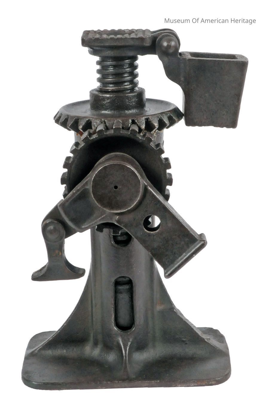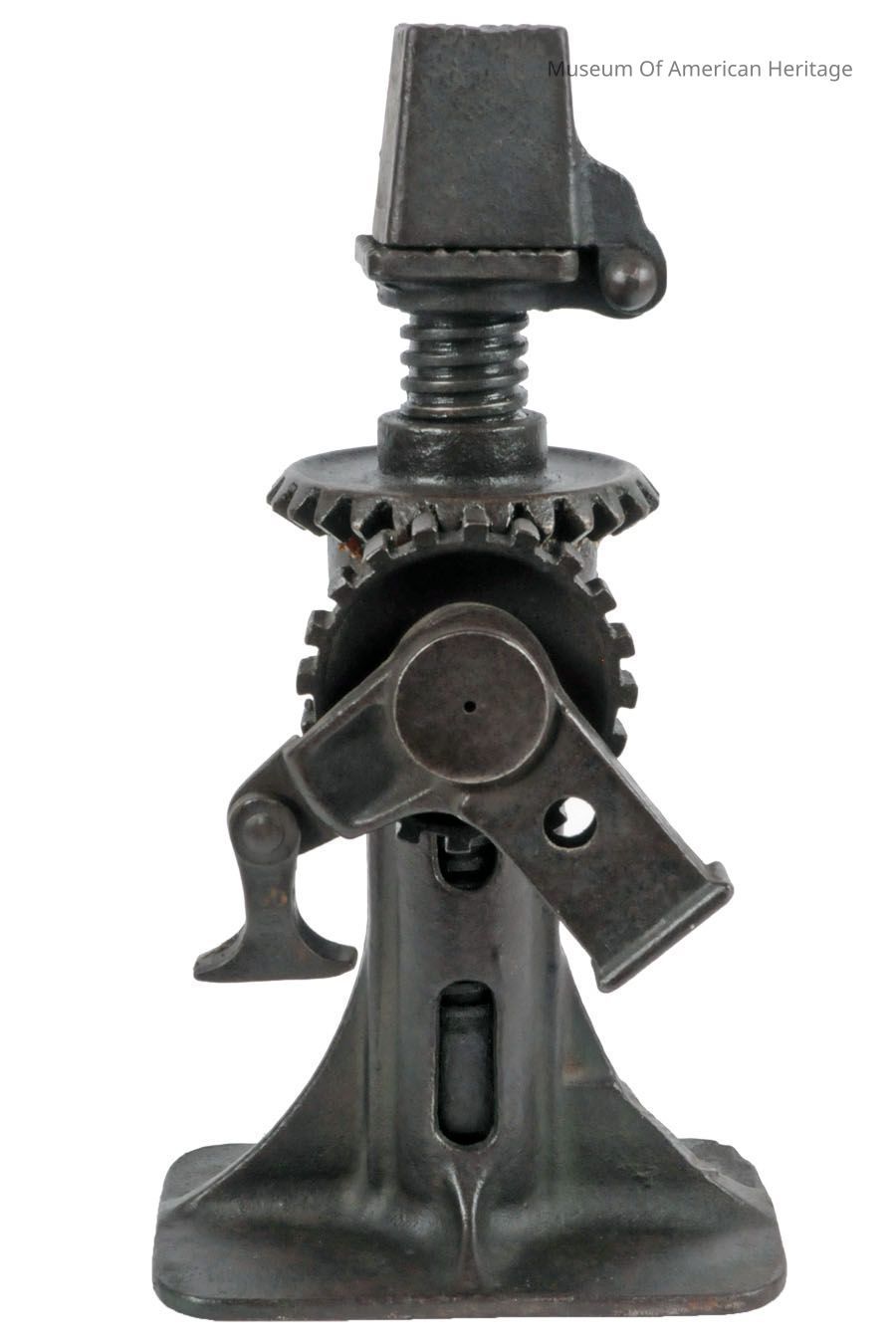 Ratcheting screw jack (has extension lever). Up/down pump action to turn the lifting gear. Flip top cover adds 2 to lifting height.