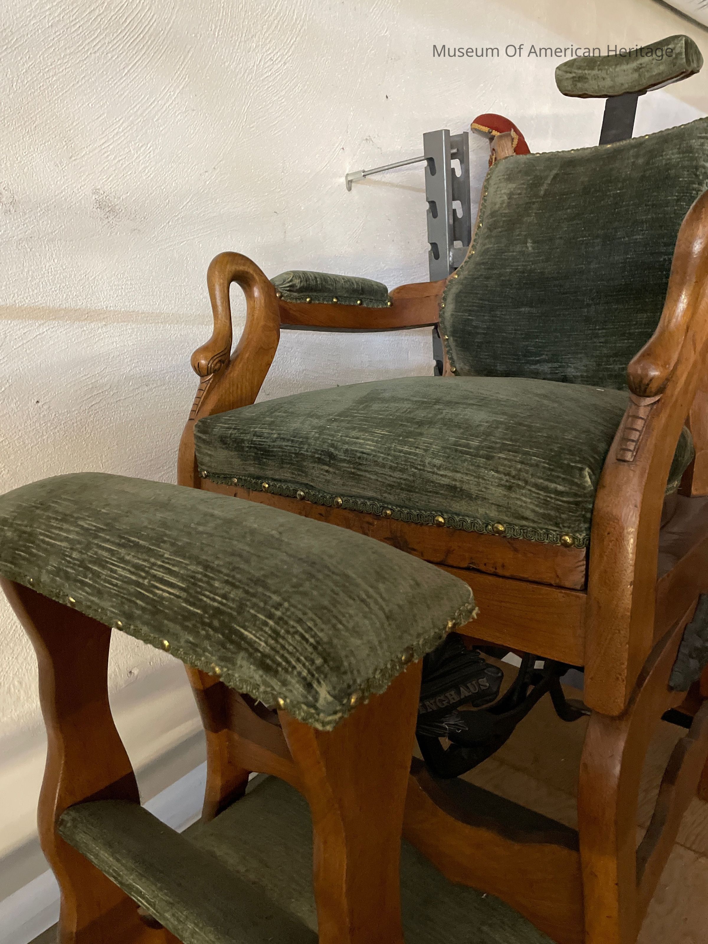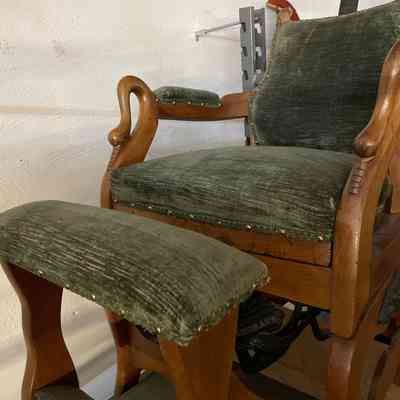 Walnut frame with swan arm terminals, separate foot rest.