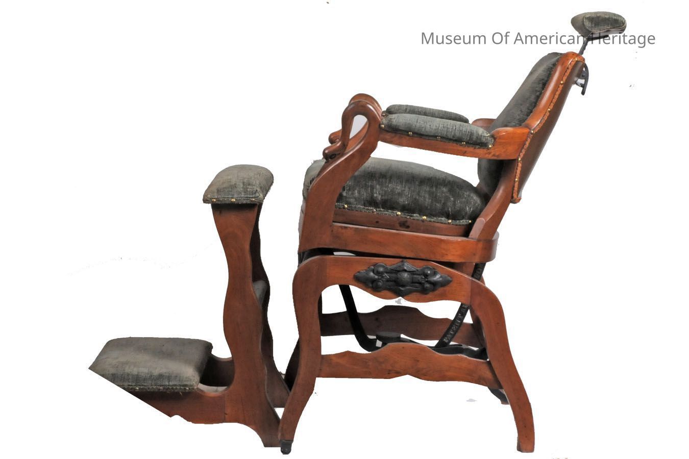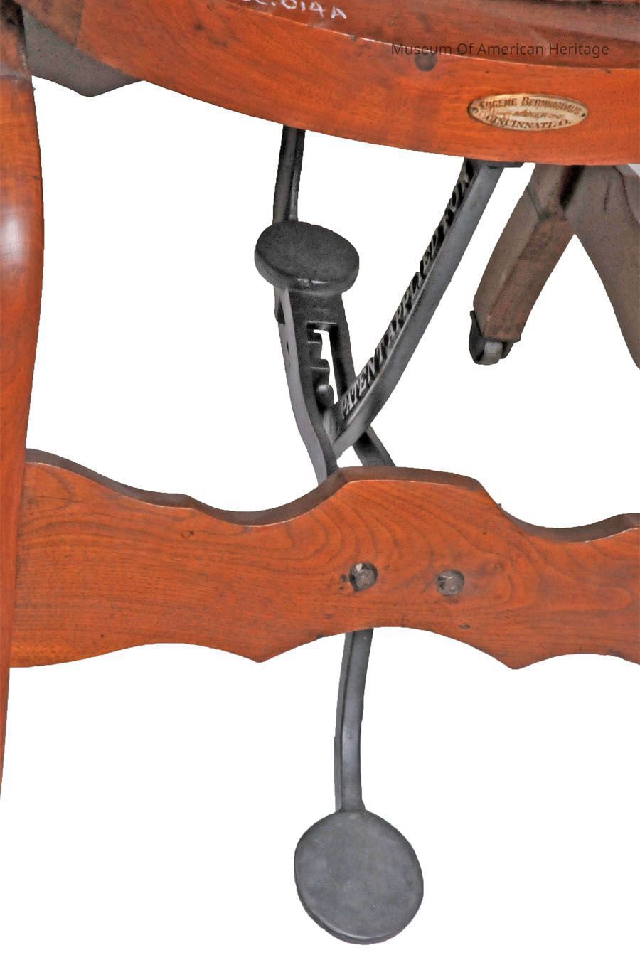 Foot actuated mechanical reclining chair.