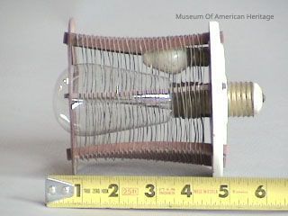 White porcelain base, large clear lamp, wire cage @120v AC, 7 watt Xmas tree style lamp as current limiter.