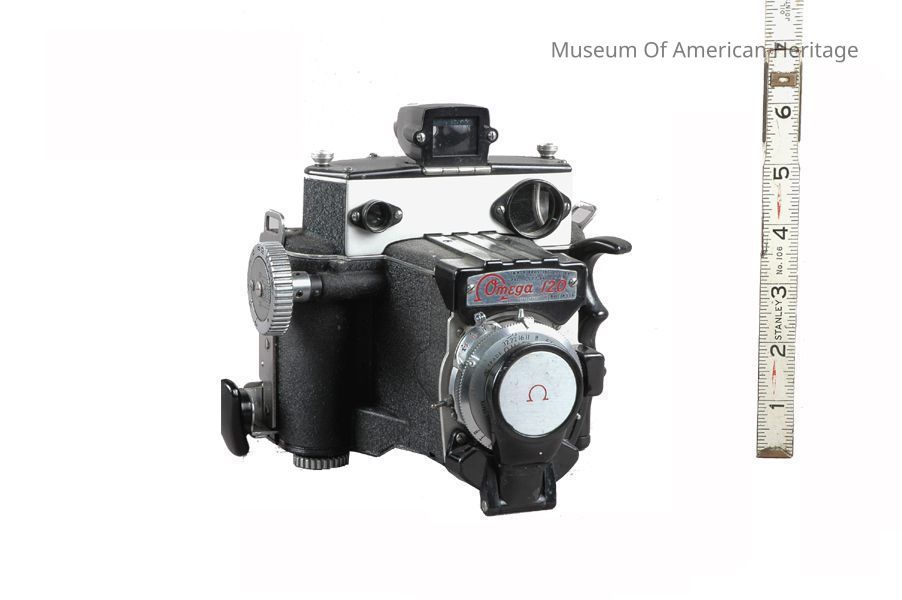 140 exposure, rapid film advance, Ideal Format , with Omega Flash 120 (564B), Ser #11301, Automatic flashbulb changer (rotary).