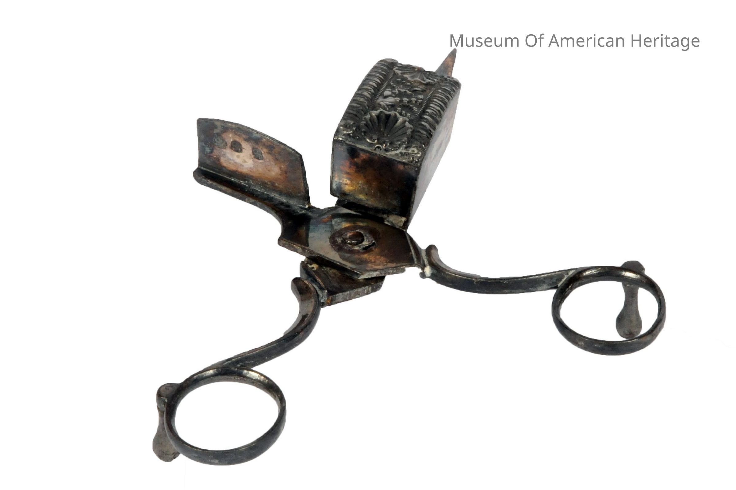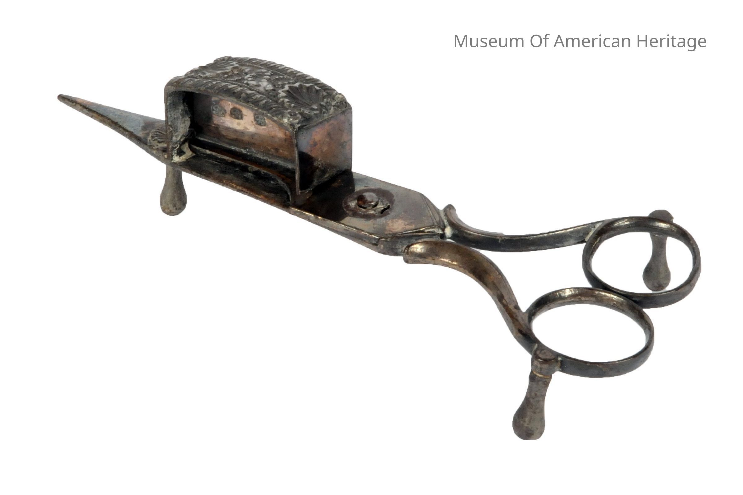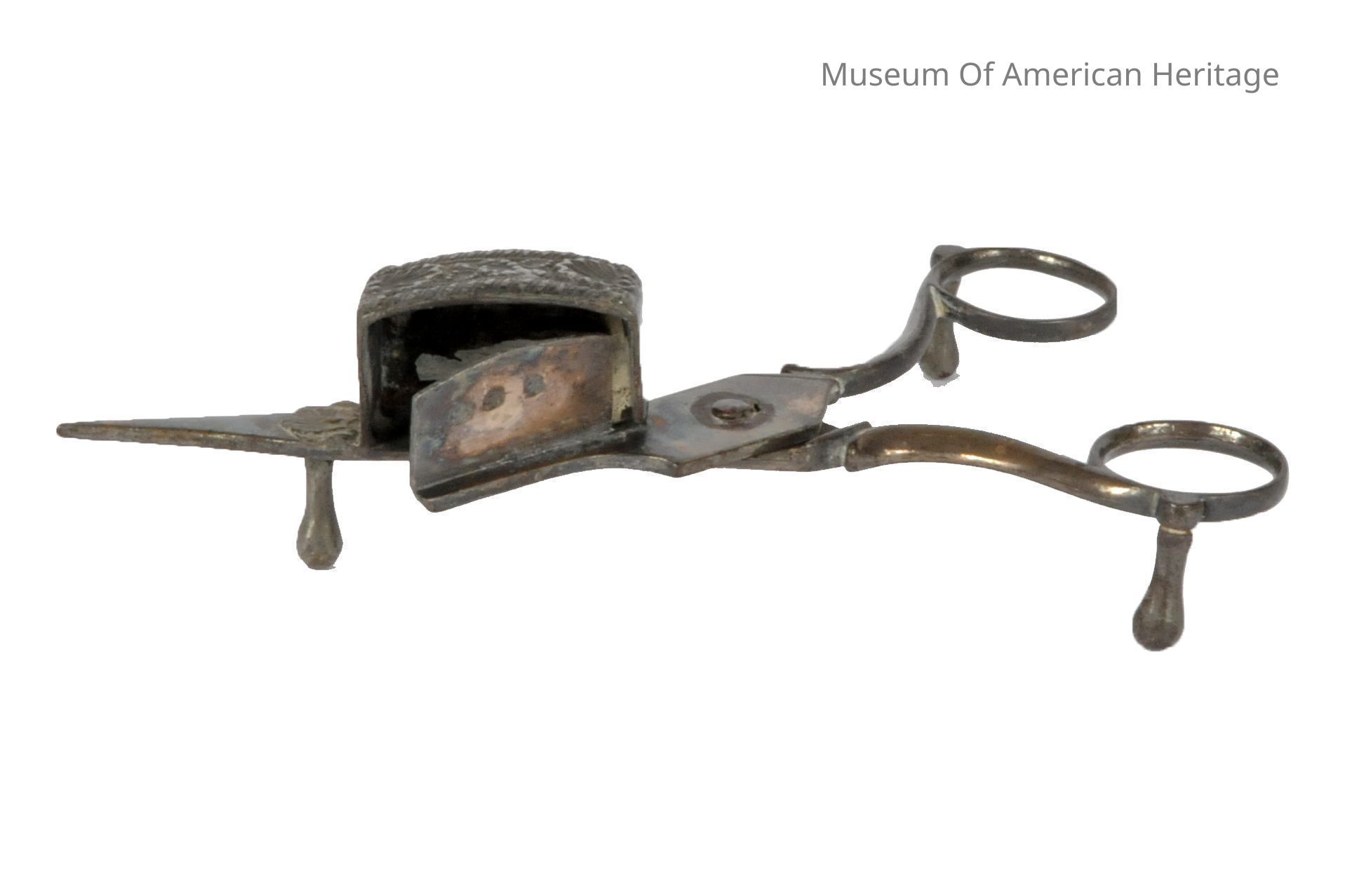 Scissors like action, pointed end 6 1/2 to pull wick, box to capture cut wick.