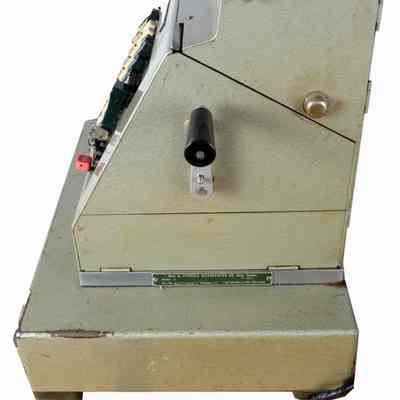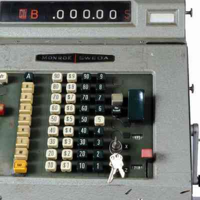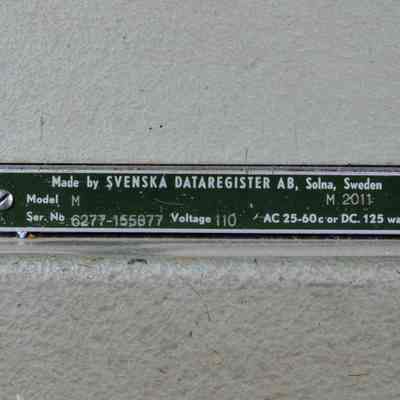 Senska Dataregister A.B with manuals, 1 row of 9 white keys, $10 thru $90, 1 row of 9 white key $1 thru $9, on 1 row of 9 black keys, .10 thru .9, 1 row of 9 black keys .1 thru .9 cents, 8 keys for depts.
